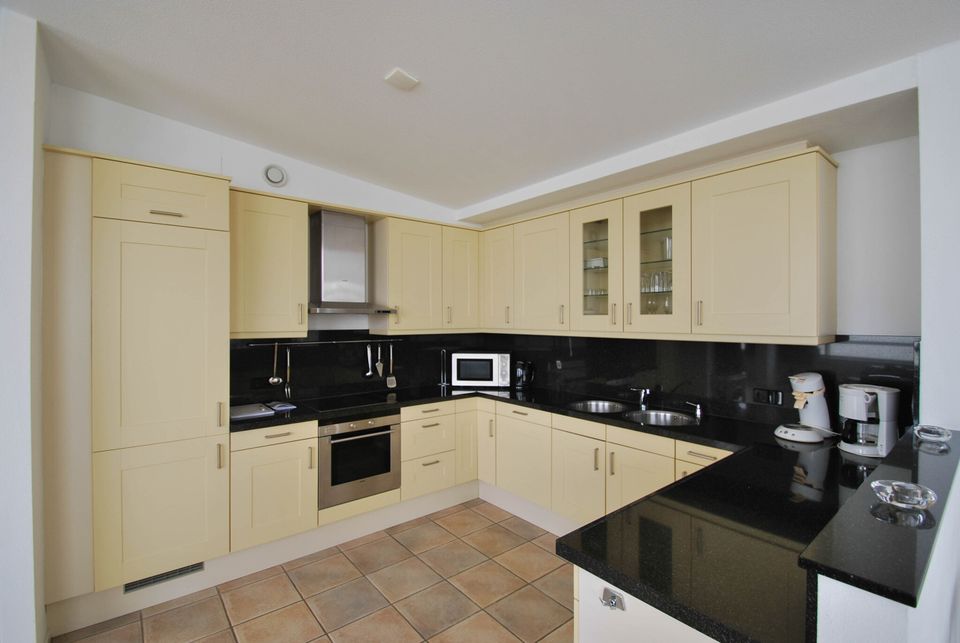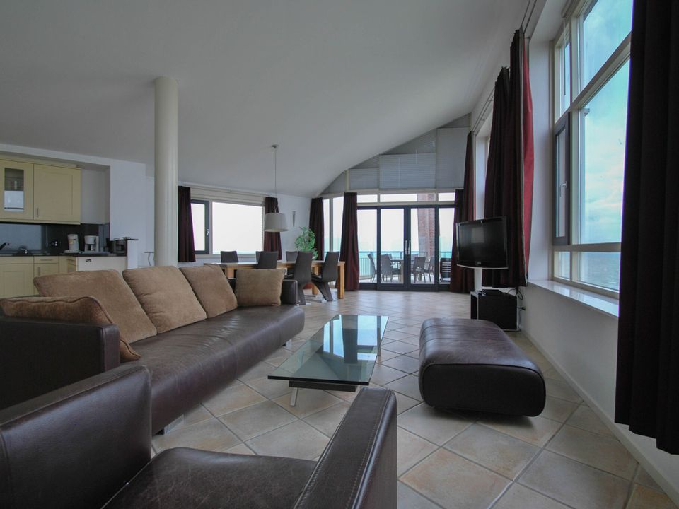 Diese luxuriösen Apartments befinden sich im dritten Stock und verfügen über einen großen Balkon mit Blick auf das IJsselmeer. Das großzügige offene Wohnzimmer mit Sitz- und Essbereich sowie der Küche ist komfortabel und bietet ausreichend Platz für alle. Die Küche ist offen und komplett ausgestattet, inklusive Backofen und Geschirrspüler. Es gibt zwei Schlafzimmer mit jeweils zwei Einzelbetten und zwei Badezimmer. Ein Badezimmer verfügt über Dusche, Badewanne und WC und das zweite unter anderem über eine Sauna. Es besteht auch die Möglichkeit zum Waschen, Trocknen und Bügeln. Die Wohnung ist mit einem Aufzug erreichbar und Ihnen stehen zwei Parkplätze zur Verfügung.