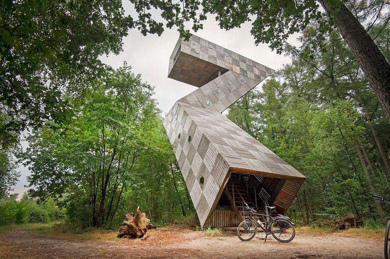 Vom Kunstwerk aus blicken Sie über die sogenannte friesische Savanne. Der Entwurf stammt vom Architekten Dick de Haan, der für diesen Aussichtsturm mehrere Architekturpreise erhielt. Wegen seiner Form wird er auch „Periskop“ genannt. Der Turm ist von Ravenswoud aus erreichbar.