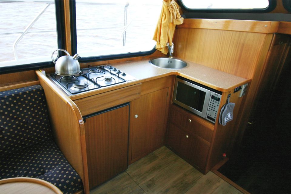 Diese robuste, elegante und luxuriöse Motoryacht ist perfekt für eine Familie oder drei Paare. Dank des leistungsstarken 6-Zylinder-Dieselmotors und der starken Bug- und Heckstrahlruder segeln Sie mühelos und komfortabel durch jedes Segelrevier.