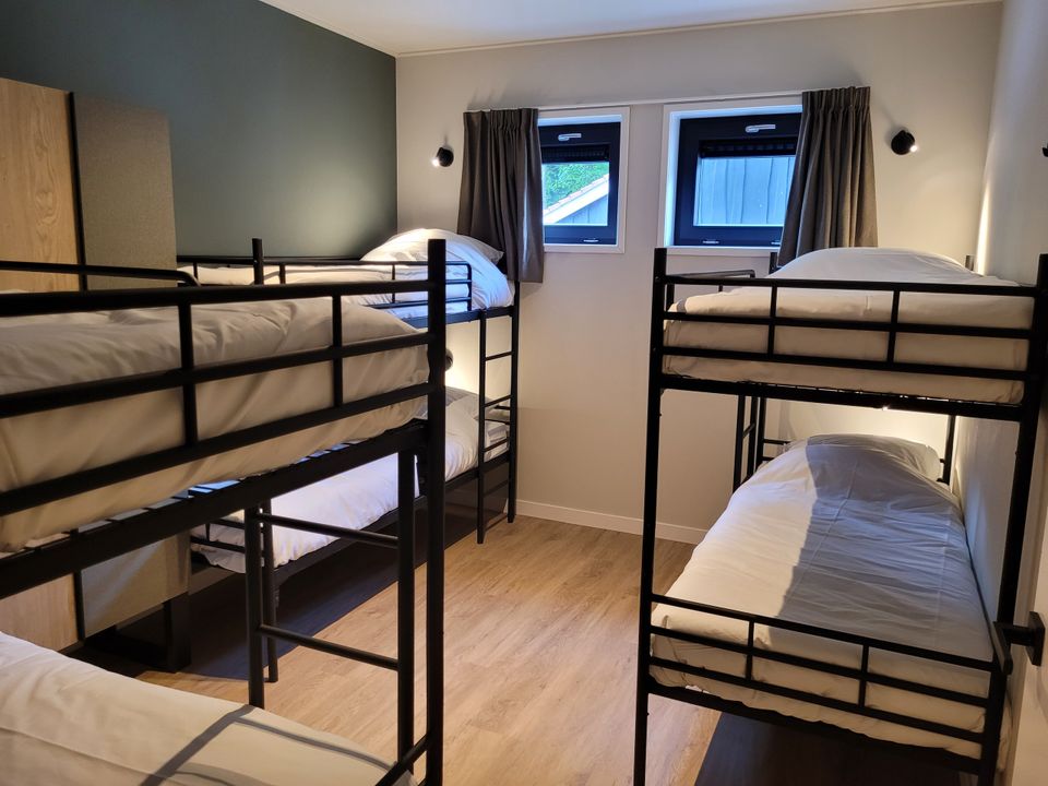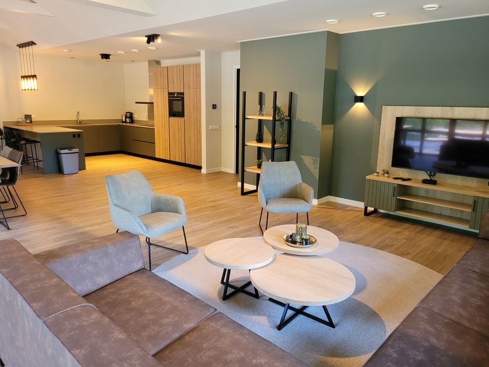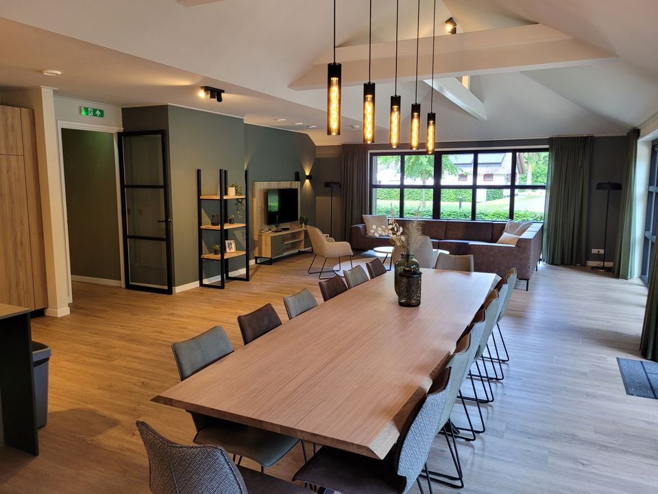 Diese im Juni 2023 fertiggestellte Gruppenunterkunft ist für Familien mit bis zu 28 Personen geeignet. Es gibt insgesamt zehn Schlafzimmer, von denen zwei sechs Personen beherbergen können und die restlichen acht Schlafzimmer zwei Personen beherbergen können. Es gibt 8 Badezimmer. Die Gruppenunterkunft verfügt über zwei Wohnzimmer und dazugehörige Küchen. Diese Küchen sind komplett ausgestattet und komplett ausgestattet. Angrenzend an die Unterkunft befindet sich eine geräumige Terrasse mit Blick auf einen großen Spielplatz für die Kinder. Ist es kein Wetter, um draußen zu spielen? Dann können die Kinder drinnen im BosSpeelhuis spielen.