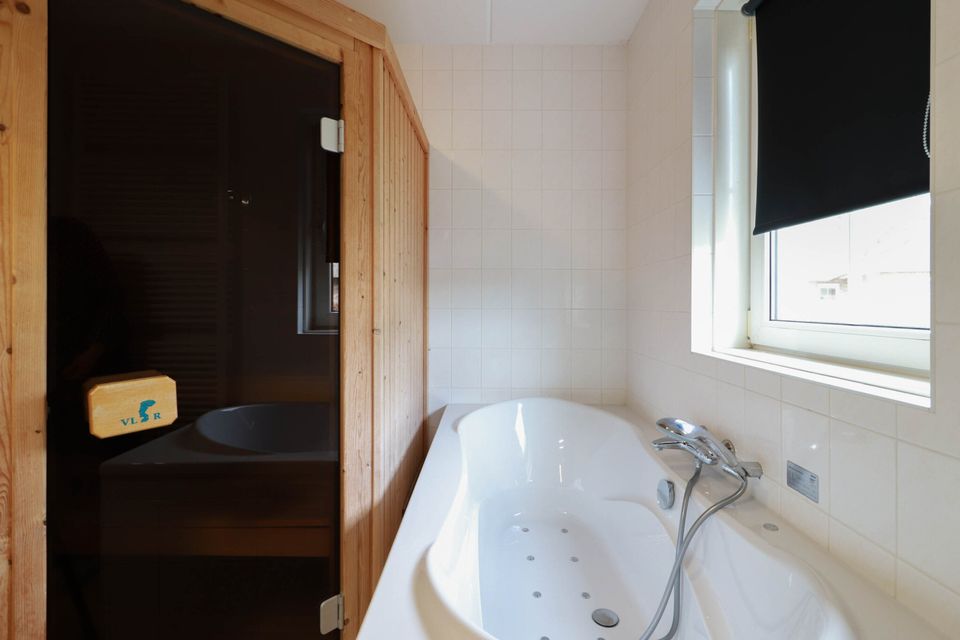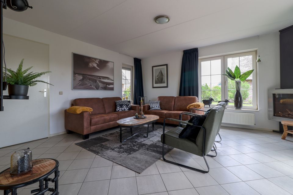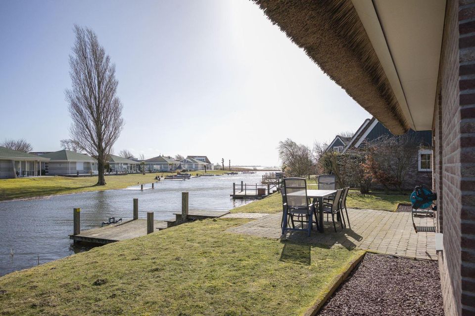 Diese luxuriöse, freistehende Villa mit Reetdach verfügt über einen großen Garten und liegt an einem offenen Wasserweg. Hier können Sie es bis in die späten Stunden auf der Terrasse oder auf dem Steg am Wasser genießen. Das Wohnzimmer verfügt über eine geräumige und gemütliche Sitzecke mit Flachbildfernseher und dekorativem Kamin. Vom Wohnzimmer aus haben Sie direkten Zugang zur Außenterrasse und der offenen Küche. Die Küche ist mit einem Geschirrspüler, einer Kombi-Mikrowelle, einer Senseo-Kaffeemaschine, einem Wasserkocher, einem Toaster und einer Kühl-/Gefrierkombination ausgestattet. Im Erdgeschoss gibt es ein Badezimmer mit Whirlpool und Nasssauna als zusätzlichen Luxus. Im Obergeschoss befinden sich drei Schlafzimmer, die alle mit bequemen Boxspringbetten ausgestattet sind. Hier finden Sie auch das zweite Badezimmer mit Dusche und zweitem WC.