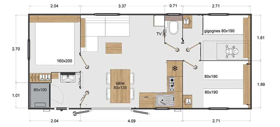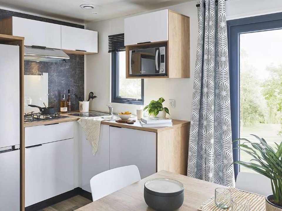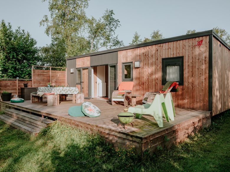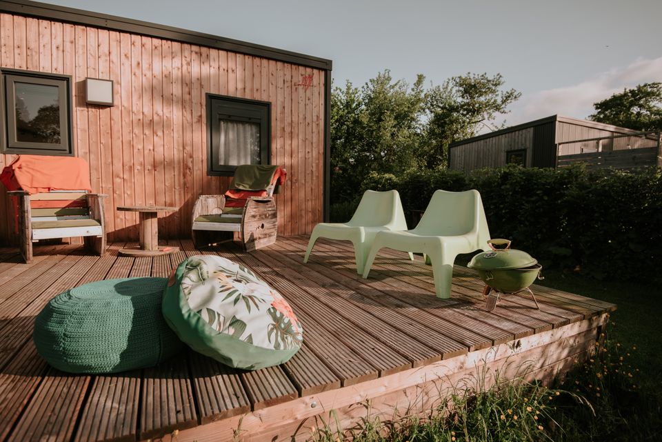 Dieses wunderschöne XL-Tiny-House aus Holz namens „Bosk“ ist perfekt für eine Familie mit Kindern. Bosk verfügt über eine voll ausgestattete Küche, einen gemütlichen Sitz- und Essbereich, Heizung, Dusche, separates WC und eine schöne Veranda. So könnt ihr die Sonne vor eurem Tiny House genießen und bei einem frisch zubereiteten Frühstück gemeinsam am Tisch sitzen. Darüber hinaus verfügt dieses Tiny House über nicht weniger als drei schöne Schlafzimmer mit einem bequemen Doppelbett und drei Einzelbetten. Mieten Sie für einen Abend den holzbefeuerten Whirlpool oder die Fasssauna. So können Sie sich bei einem Aufenthalt im Bosk vollkommen entspannen. Auf der Veranda stehen ein stabiler Tisch und schöne Stühle.
