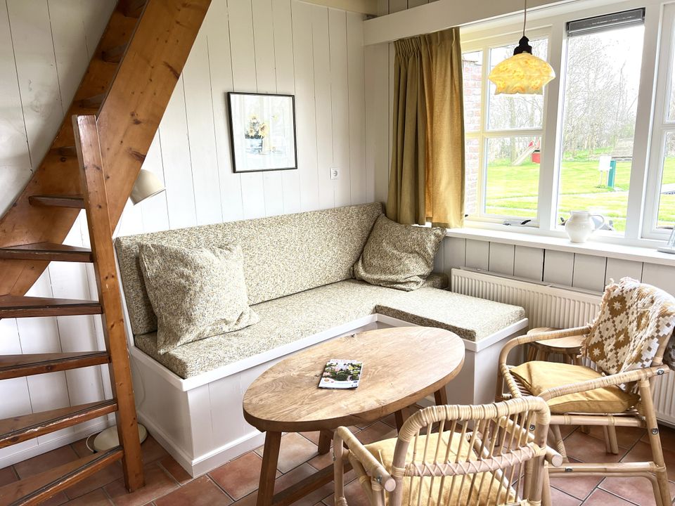 Die Eckwohnung ist eine äußerst helle Wohnung, die sich größtenteils im Erdgeschoss eines ehemaligen Bauernhofes befindet. Von der Wohnung, bzw. dem Sitzplatz draußen, haben Sie einen herrlichen Blick über Wasser und Wiesen! Im Erdgeschoss finden Sie einen Wohn- und Essbereich sowie eine schöne Küche und ein Badezimmer mit Dusche und WC. Eine Wendeltreppe führt Sie in den ersten Stock, wo Sie ein Schlafzimmer mit einem Doppelbett und zwei Einzelbetten finden, von denen eines ein Hochbett ist.