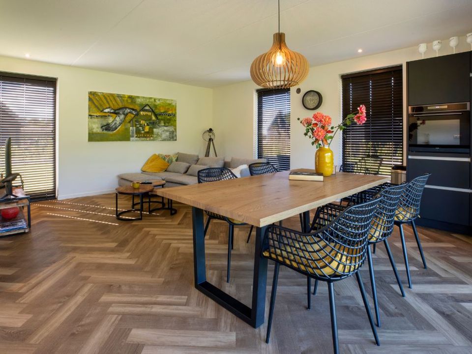 Die Villen verfügen über ein geräumiges Wohnzimmer mit Blick auf den weitläufigen Garten, das Wasser und die Wiesen. Die Einrichtung wurde elegant von Innenarchitekten gestaltet. Hier finden Sie eine gemütliche Sitzecke mit Smart-TV und einen großzügigen Esstisch. Die offene Küche gehört zum Wohnzimmer und ist mit einem Backofen/Kombi-Mikrowelle, einem Geschirrspüler und einer Kaffeemaschine ausgestattet. Die Toilette befindet sich separat am Eingang. Durch die französischen Türen im Wohnzimmer gelangen Sie in den Garten mit einer schönen sonnigen Terrasse und einem privaten Steg. Hier können Sie endlos die Ruhe und die schöne Aussicht genießen. Genießen Sie endlose Sommerabende am langen Gartentisch und nutzen Sie den Grill. Die erste Etage, die über eine Treppe vom Flur aus erreichbar ist, verfügt über 2 große 2/3 Pers. Schlafzimmer und 1/2 separate Luxusbadezimmer. In allen Häusern ist ein separates Kinderbett und ein Hochstuhl vorhanden. Die Villen sind Eigentum von Privatpersonen und unterscheiden sich daher in Design und Ausstattung. Dies sorgt für ein sehr persönliches Erlebnis.