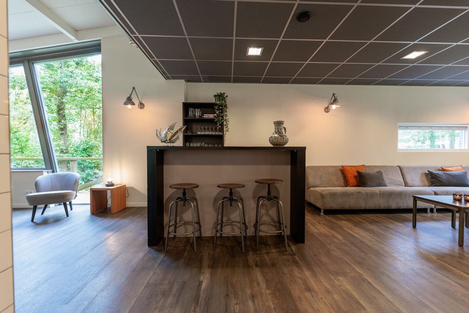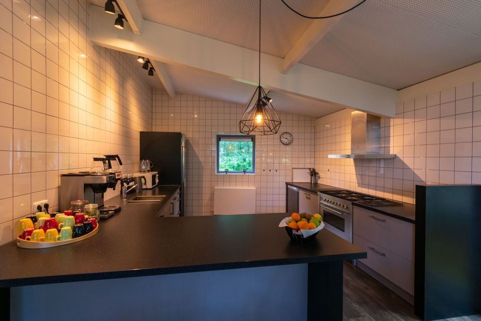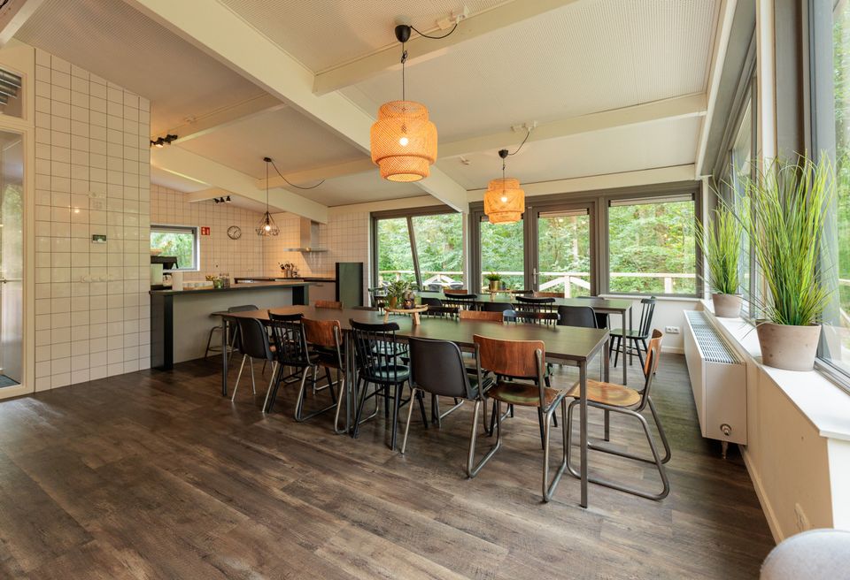 Accomodation de Eekhoorn ist eine geräumige Gruppenunterkunft mit Platz für 28 Personen. Vom Haus und der Terrasse rund um das geräumige Wohnzimmer haben Sie einen schönen Blick über die Heide von Allardsoog. Das Haus verfügt über ein geräumiges Wohnzimmer mit gemütlichem Wohn- und Essbereich. Das Wohnzimmer hat mehrere Sofas und einen gemütlichen Holzofen. Der Essbereich ist geräumig und bietet genügend Sitzgelegenheiten für alle. Die Küche verfügt über einen großen Sechs-Flammen-Gasherd und einen Backofen sowie einen Geschirrspüler und einen großen Kühlschrank. Es gibt 14 Schlafzimmer, jedes mit eigenem Bad. Dieses Badezimmer verfügt über eine Dusche, ein WC und ein Waschbecken. Die Schlafzimmer bestehen alle aus zwei Boxspring-Einzelbetten, einem Schreibtisch und einem eigenen Fernseher.