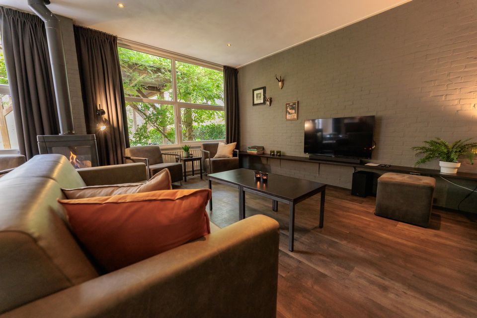 Der Fasan ist eine große Unterkunft, die Platz für 28 Personen bietet. Das Haus verfügt über 14 Schlafzimmer mit jeweils zwei Boxspring-Einzelbetten, einem Schreibtisch und einem eigenen Fernseher. Jedes Schlafzimmer hat auch ein eigenes Badezimmer mit Dusche, WC und Waschbecken. Es gibt ein geräumiges Wohnzimmer mit einem gemütlichen Wohnzimmer, das aus mehreren Sofas, einem Holzofen und einem Fernseher besteht. Angrenzend befindet sich das Esszimmer, hier stehen mehrere Tische mit ausreichend Sitzgelegenheiten für alle. Die Küche ist komplett ausgestattet mit einem Sechs-Flammen-Gasherd mit Backofen, Geschirrspüler und Kühlschrank. Vom Wohnzimmer aus betreten Sie die überdachte Gartenterrasse, auf der Sie sowohl bei schönem als auch bei Regenwetter draußen sitzen können. Hier gibt es auch eine Terrassenheizung, die Sie an kühleren Tagen warm hält.