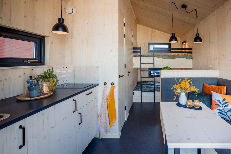Unsere drei modernen Ferienhäuser befinden sich an einem der schönsten Standorte des Wassersportcampings De Bearshoeke, direkt am Wasser des Oudegaaster Brekken. Diese charmanten Tiny Houses sind luxuriös eingerichtet und komplett ausgestattet. Hier können Sie mit bis zu vier Personen übernachten.