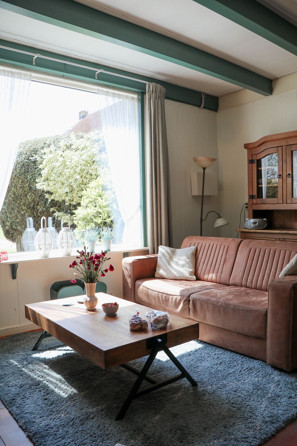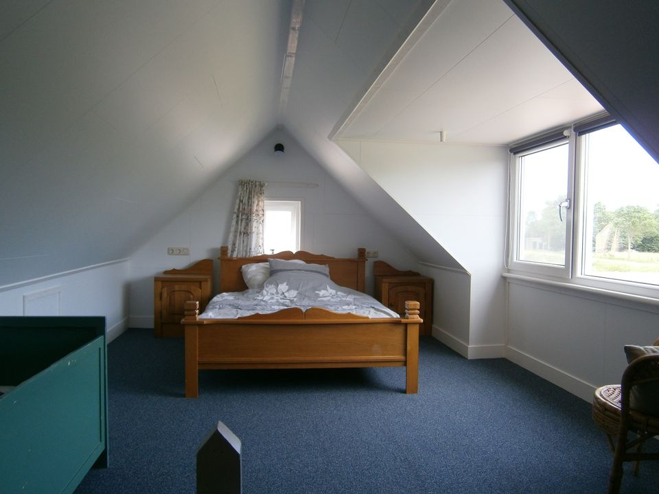 Dieses gemütliche, freistehende Ferienhaus liegt auf dem Gelände eines Bauernhofs, sodass Sie Ruhe und Platz genießen und eine schöne Aussicht über die Wiesen haben. Das Haus verfügt über eine gemütliche Veranda und einen Außenbereich mit Spielmöglichkeiten für Kinder. Im Erdgeschoss befinden sich ein großzügiges Wohn- und Esszimmer sowie die gut ausgestattete Küche. Hierzu gehören eine Spülmaschine und eine Mikrowelle. Im Erdgeschoss befinden sich außerdem ein Badezimmer mit Dusche, Toilette und Waschbecken sowie ein erstes Schlafzimmer. Dieses verfügt über ein bequemes Doppelbett. Über die Treppe im Wohnzimmer gelangen Sie in die erste Etage mit einer großen Dachgaube, hier befindet sich der zweite Schlafbereich mit einem Doppelbett und zwei Einzelbetten. Der Raum zwischen den Schlafbereichen ist durch Cowboy-Schwingtüren getrennt. Auch hier steht ein Babybett bereit, welches auf Wunsch auch herausgenommen werden kann. Durch die großzügige Dachgaube ist ausreichend Stehhöhe vorhanden und Sie genießen eine wunderschöne Aussicht!
