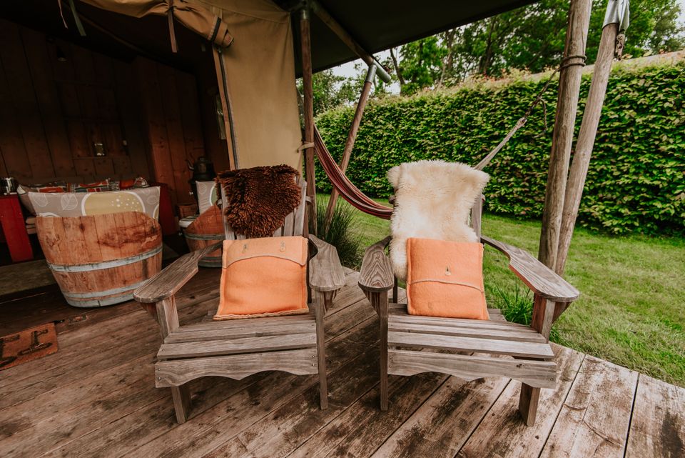 „Tuscany“ ist ein wunderschön eingerichtetes Safarizelt im toskanischen Stil. Dieses Zelt ist für 5 Personen geeignet und mit allen Annehmlichkeiten ausgestattet. Es gibt ein Doppelbett, ein Etagenbett, ein Einzelbett, eine Regendusche, eine separate Toilette und eine voll ausgestattete Küche. Für die kühleren Abende gibt es eine schöne Gasheizung. Vor dem Safarizelt gibt es eine schöne Veranda, auf der Sie die schöne Umgebung genießen und beispielsweise Ihr Frühstück genießen können. Die Toskana ist perfekt für Ihre Familie oder eine Gruppe von Freunden.