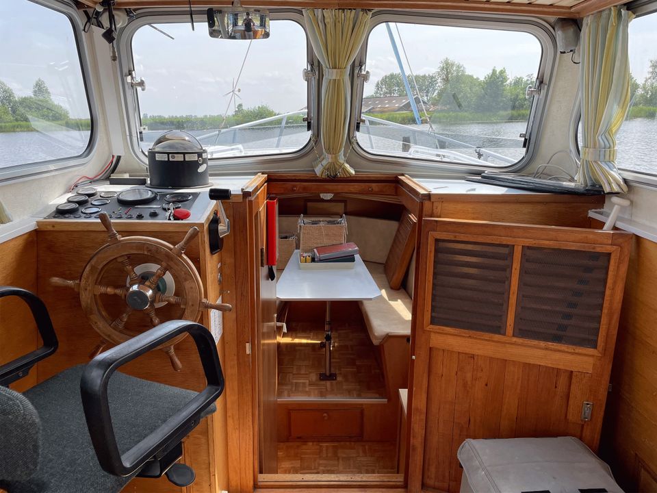 Die Ouwe Peer ist ein kompaktes, aber funktionelles Boot, ideal für einen Bootsurlaub. Das Äußere wurde für ein frisches Aussehen komplett gestrichen, während der Innenraum einfach, aber sauber und ordentlich ist. Das Boot verfügt über separate Schlaf- und Wohnbereiche mit 3 Einzelbetten im Achtercockpit. Die Küche verfügt über einen 2-Flammen-Gasherd und ein komplettes Inventar. Eine große Kühlbox, angeschlossen an die Batterie, hält Speisen und Getränke kühl. An Bord gibt es auch eine Toilette. Das Zelt auf dem Achterdeck lässt sich öffnen, sodass Sie bei schönem Wetter die Sonne in vollen Zügen genießen können.