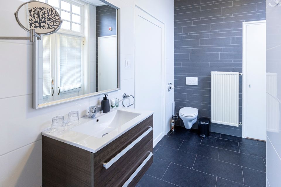 Diese geräumige, luxuriöse Suite ist ein helles und komfortables Zimmer. Das Zimmer befindet sich im ersten Stock des B&B und ist über eine großzügige Treppe zu erreichen. Das Zimmer ist geräumig und verfügt über einen Schlaf- und Wohnbereich. Der Schlafbereich besteht aus einem schönen Boxspring-Doppelbett. Der Wohnbereich verfügt über ein bequemes Sofa und einen Fernseher. Zusätzlich gibt es ausreichend Stauraum durch zwei Schränke. Das private Badezimmer verfügt über eine Dusche, ein WC und ein Waschbecken. An heißen Tagen können Sie für eine kühle Brise ganz einfach die Klimaanlage einschalten.