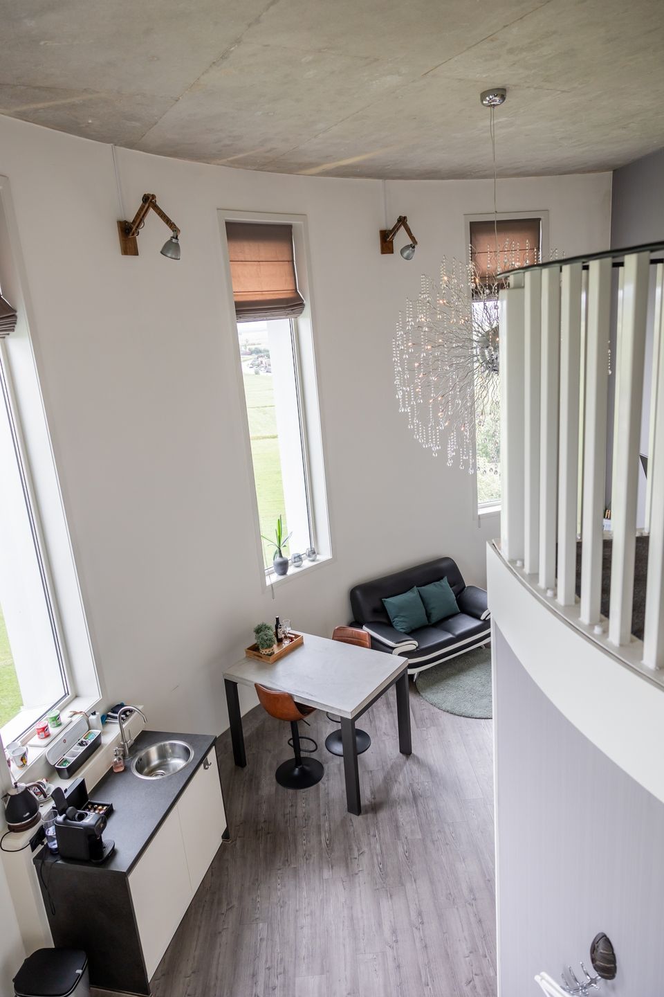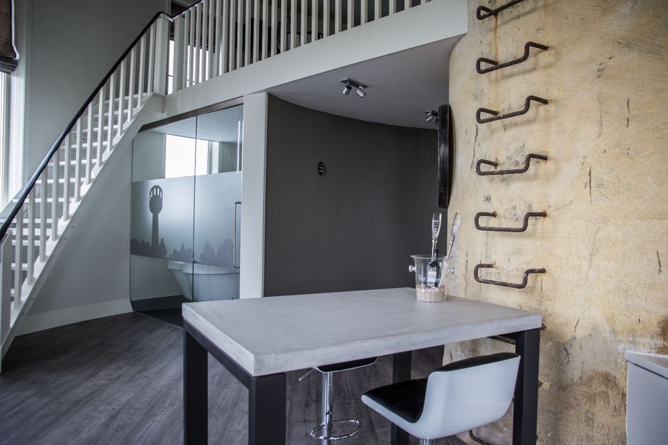 Einzigartig! Verbringen Sie die Nacht mit einer fantastischen Aussicht. Der Name „Aqua“ ist eine Anspielung auf das Wasserreservoir, das die frühere Funktion des Wasserturms war. Das Zimmer besteht aus einem geräumigen Wohnzimmer mit Minibar, Zubereitungsmöglichkeiten für eine Tasse Kaffee/Tee und einem Badezimmer mit Dusche, WC und Badewanne. Über eine Treppe erreichen Sie das Dachgeschoss, wo sich das komfortable Boxspring-Doppelbett befindet. Die großen Fenster bieten einen wunderschönen Panoramablick auf die friesische Landschaft und das friesische Seengebiet.