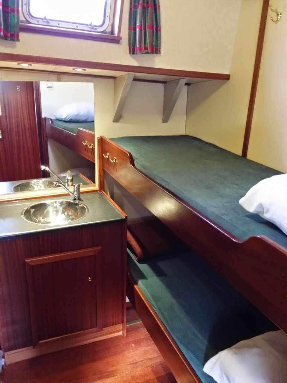Die Klipper Stella Frisia verfügt über große Fenster, die viel Licht hereinlassen. An Bord gibt es zehn Kabinen, eine Einzel-, drei Doppel-, eine Dreibett- und fünf Vierbettkabinen. Das Schiff verfügt über drei Toiletten und zwei Duschen. Darüber hinaus ist das Schiff komplett mit energieeffizienter LED-Beleuchtung ausgestattet.