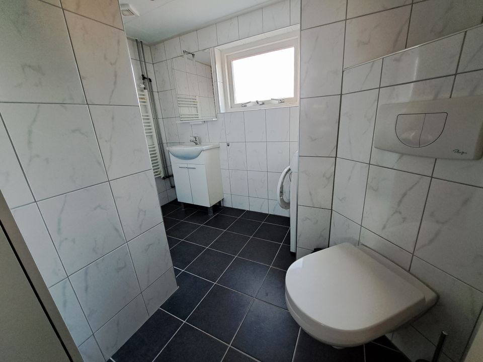 Diese Wohnung liegt direkt am Wasser, so dass Sie im Sommer von der Terrasse aus die vorbeifahrenden Boote genießen können! Auf dem Campingplatz haben Sie auch die Möglichkeit, selbst ein Boot zu mieten und die Gegend vom Wasser aus zu erkunden. Die Wohnung verfügt über einen großzügigen Wohnbereich mit Esstisch, Sofa und voll ausgestatteter Küche. Die Küche ist mit einem Geschirrspüler, einem Gasherd und einem großen Kühlschrank mit Gefrierfach ausgestattet. Es gibt zwei Schlafbereiche, das erste Schlafzimmer im Erdgeschoss verfügt über ein bequemes Doppelbett. Das zweite Schlafzimmer liegt im Zwischengeschoss und ist vom Wohnzimmer aus über eine Treppe erreichbar. Hier gibt es zwei Einzelbetten. Außerdem steht Ihnen ein eigenes Badezimmer zur Verfügung, ausgestattet mit Dusche, WC und Waschbecken.