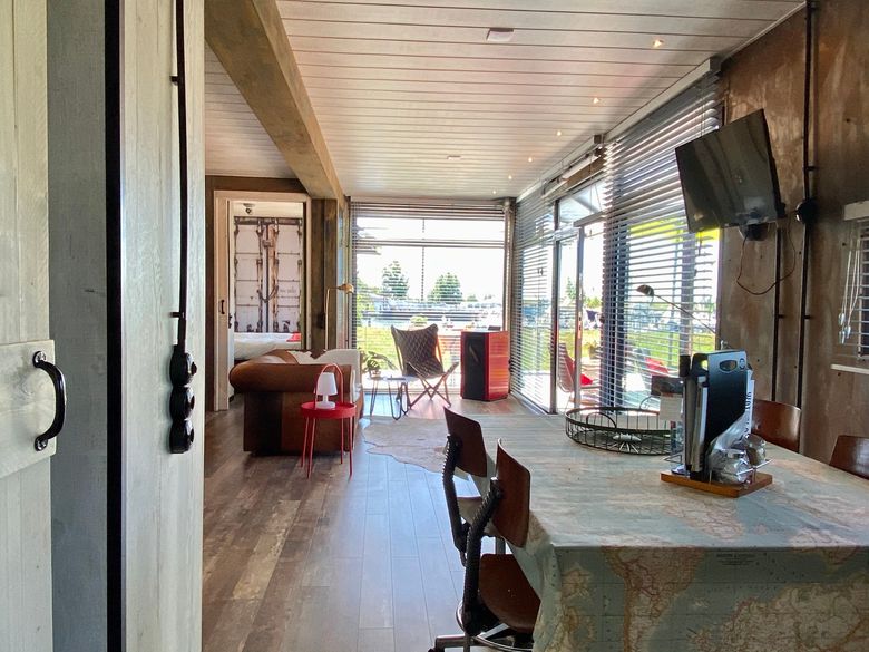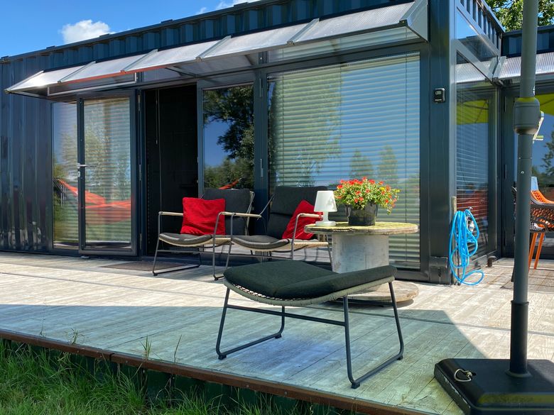 Schlafen in einem alten Seecontainer, das ist in diesem Glamptainer möglich! Wenn Sie eintreten, werden Sie erstaunt sein, wie viel Platz dieser Glamptainer bietet. Es wurde an alles gedacht; ein geräumiges Wohnzimmer, eine gemütliche Essecke und eine gut ausgestattete Küche. Es gibt sogar zwei Schlafzimmer und ein geräumiges Badezimmer! Hier können Sie Ihren Urlaub so richtig genießen. Um den Glamptainer herum befindet sich eine Terrasse mit Sonnenschirm, sodass Sie wählen können, ob Sie in der Sonne oder im Schatten sitzen möchten.