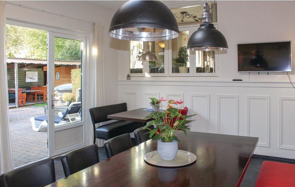 Gemütliche Unterkunft, die für eine Gruppe von bis zu 10 Personen geeignet ist. Das Ferienhaus liegt auf einem kleinen Campingplatz direkt am Wasser. Nach wenigen Metern Segeln erreichen Sie den kleinen See, den Nannewiid, der von einem Naturschutzgebiet umgeben ist. Das freistehende Haus verfügt über ein gemütliches Wohnzimmer mit komplett offener Küche. Das Haus verfügt über 7 Schlafzimmer mit 10 Betten (Einzel- und Doppelzimmer) und 3 Badezimmer mit Dusche, Waschbecken und Toilette. Es gibt ein Spielzimmer mit Billardtisch, Tischfußball und Fernseher. Draußen gibt es mehrere (überdachte) Terrassen, eine Sauna und einen Whirlpool. Viele Möglichkeiten für Unterhaltung und Entspannung. Sie können auch Kanus und Tretboote kostenlos nutzen. Kurz gesagt: Kommen Sie und genießen Sie die Ruhe, die Natur und einander!