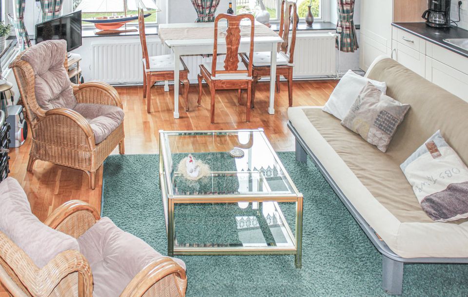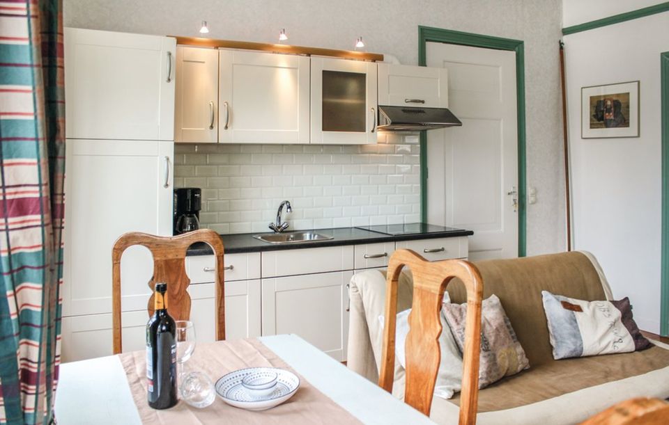 Die Wohnung befindet sich im Erdgeschoss. Das gemütlich eingerichtete Wohnzimmer verfügt über einen Esstisch und ein Schlafsofa. Es gibt eine komplette Küche mit Kaffeemaschine, Kühlschrank, Induktionskochfeld und Mikrowelle. Das schöne Badezimmer ist mit Toilette, Dusche und Waschbecken ausgestattet. Es gibt auch einen Dachboden mit einem Doppel-Boxspringbett. Im großzügigen Garten mit verschiedenen Terrassen können Sie beim Grillen den Blick auf das Wasser und die umliegenden Wiesen genießen. Ihre Fahrräder können Sie in der Garage des Eigentümers unterstellen.