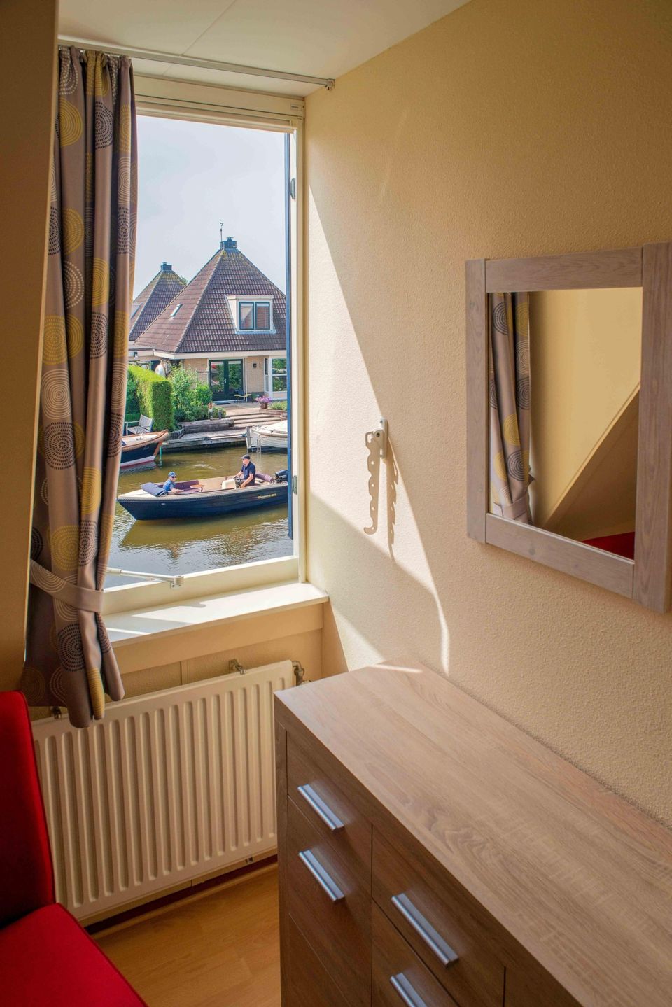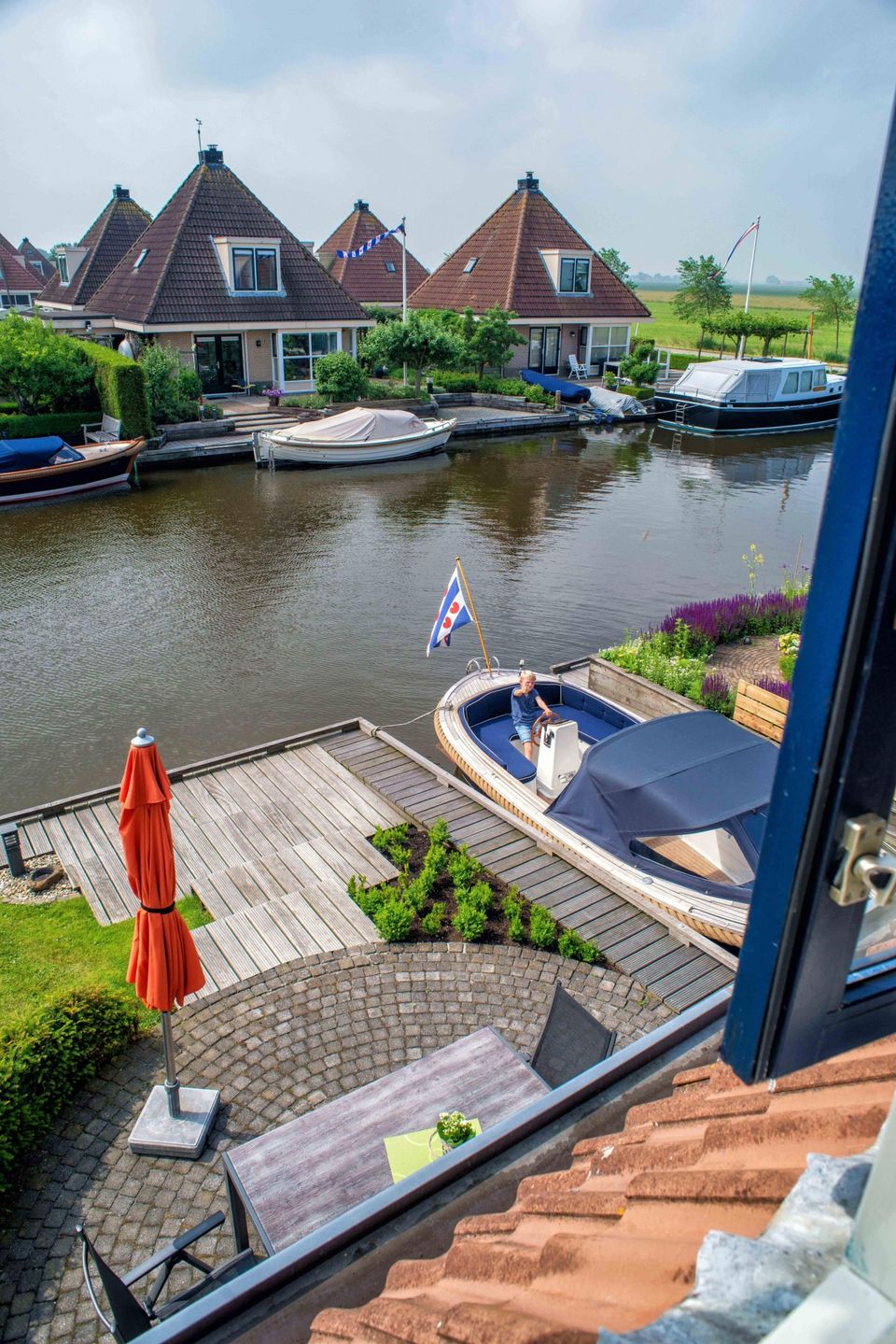 In einem kleinen Villenpark in Woudsend finden Sie dieses komfortable Ferienhaus. Das Ferienhaus liegt direkt am offenen Wasserweg und verfügt über einen eigenen Parkplatz. Sie betreten das Esszimmer mit großem Essbereich und offener Küche. Die Küche ist komplett ausgestattet und verfügt über eine Mikrowelle, einen Kühlschrank, einen Backofen, einen Gefrierschrank und einen Geschirrspüler. Angrenzend befindet sich die großzügige gemütliche Sitzecke mit großen Fenstern. Sie blicken rundherum über die offene Wasserstraße. Das Wohnzimmer verfügt außerdem über einen praktischen Fliesenboden, einen Fernseher, einen großen Schrank mit Spielen und Büchern, einen schönen Kamin und eine gemütliche Sitzecke. Im ersten Stock finden Sie drei Schlafzimmer, zwei Schlafzimmer mit 2 Einzelbetten und 1 Schlafzimmer mit einem Doppelbett (einige Matratzen) und ein geräumiges Badezimmer. Das Badezimmer verfügt über einen Whirlpool, eine große Dusche und zwei Waschbecken. Die Terrasse verfügt über bequeme Gartenmöbel und einen Sonnenschirm. Nach den nötigen Sonnenstunden können Sie in der Außendusche eine erfrischende Dusche nehmen oder einfach ein Bad im Außenwasser nehmen. Mit dem Boot vor der Tür finden Sie hier das optimale Urlaubsgefühl.