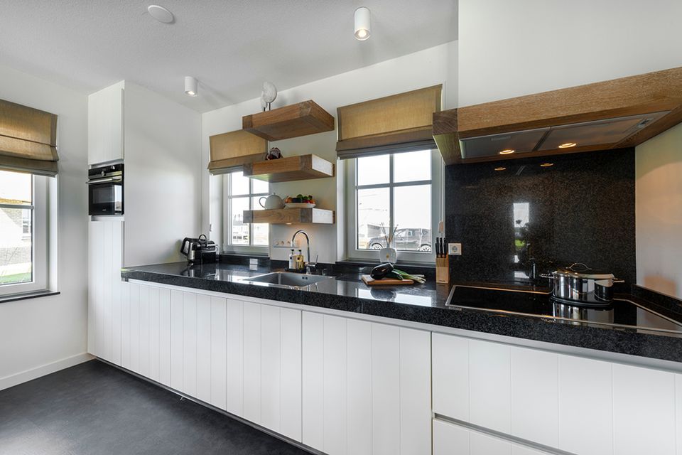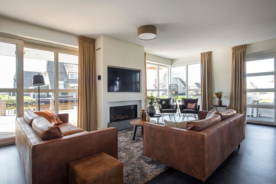 Diese geschmackvoll eingerichtete Villa am Wasser verfügt über ein geräumiges Wohnzimmer mit einem bequemen Sitzbereich. Vom Wohnzimmer mit Schiebetür gelangen Sie auf die Deckterrasse mit herrlichem Blick über das Wasser. Die geräumige Küche ist komplett ausgestattet mit einem langen Esstisch für die gesamte Gruppe. Im Erdgeschoss gibt es auch ein Schlafzimmer mit zwei Einzelbetten und ein Badezimmer mit einer geräumigen finnischen Sauna. Über die Treppe im Flur gelangen Sie in den ersten Stock. Hier sind drei Schlafzimmer mit Boxspring-Einzelbetten und einem Boxspring-Doppelbett. Jedes Zimmer verfügt über einen Smart-TV und viel Stauraum. Es gibt auch drei Badezimmer, von denen eines eine Badewanne und eine separate Toilette hat. Für zusätzlichen Komfort gibt es eine Waschküche mit Waschmaschine, Wäschetrockner und extra Kühlschrank.