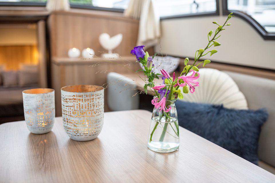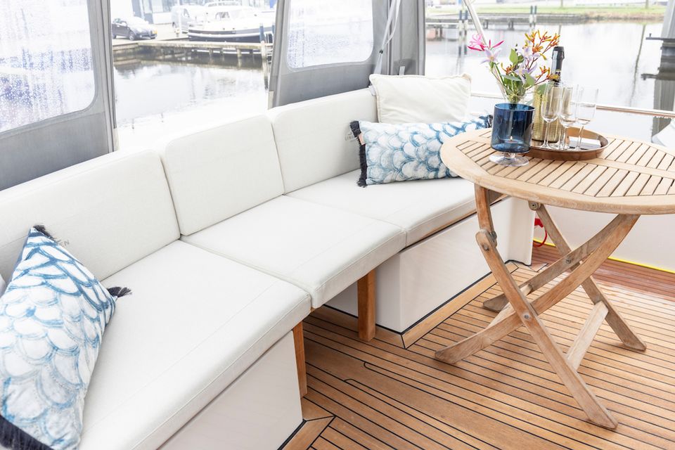 Genießen Sie die friesischen Seen an Bord dieser sportlichen Yacht. Dieses Schiff bietet Platz für bis zu vier Personen und verfügt über zwei Schlafkabinen mit jeweils zwei Einzelbetten. An Bord gibt es außerdem zwei Toiletten und eine Dusche. Der Innenraum dieser Motoryacht zeichnet sich durch eine intelligente Aufteilung und die Verwendung leichter Materialien aus. Es gibt eine voll ausgestattete Küche und eine gemütliche Sitzecke mit Fernseher. Das Achterdeck besteht aus Teakholz und verfügt über ein geräumiges festes Sofa mit bequemen Kissen. Dieses Deck kann mit einem großen Cabrio-Zelt verschlossen werden. An sonnigen Tagen öffnen Sie das Cabrio, um das Wetter optimal genießen zu können. Alle unsere Yachten sind mit einem Bug- und Heckstrahlruder sowie einem umfangreichen Navigationspaket ausgestattet.