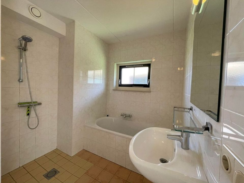 Dieser strohgedeckte Bauernhaus-Bungalow für acht Personen ist geräumig mit zwei Parkplätzen und einem großen Garten. Im Erdgeschoss befindet sich ein großes, gemütliches Wohnzimmer und eine gut ausgestattete Küche. Es gibt auch ein Badezimmer mit separater Toilette und ein Schlafzimmer im Erdgeschoss. Auf der ersten Etage befinden sich zwei weitere Schlafzimmer und ein Bettkasten oder drittes Schlafzimmer. Das zweite Badezimmer befindet sich ebenfalls auf dieser Etage, dieses Badezimmer hat sogar eine schöne Badewanne!