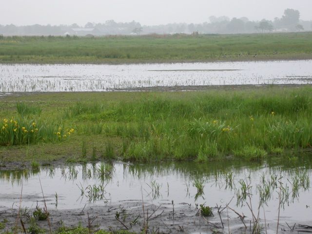Ondiep water en plasdras, een trekpleister voor veel vogelsoorten.