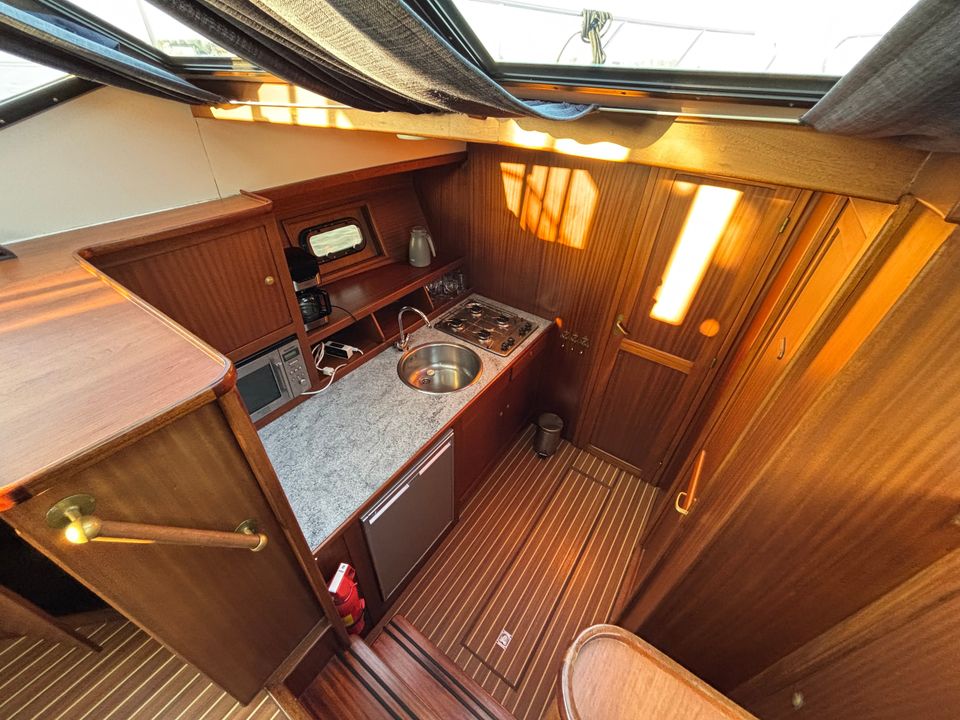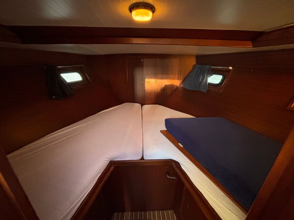 Die durchdachte Gestaltung bietet Platz für Familie, Verwandte und Freunde. Die vollwertige, geräumige Küche ist mit allen Annehmlichkeiten ausgestattet, die Sie von zu Hause gewohnt sind. Die Geräte sind so konzipiert, dass sie Funktionalität und Benutzerfreundlichkeit vereinen. Die Verarbeitung der Innen- und Außenseiten ist auf Pflegeleichtigkeit und Langlebigkeit ausgelegt. Die Vri-Jon Contessa – Samba verfügt über 3 Kabinen, 2 mit Doppelbett und eine mit Etagenbett. Zwei der drei Kabinen verfügen über eine eigene Toilette.