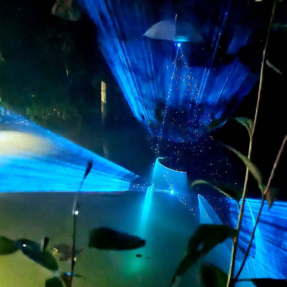 De blikvanger is Cetus, een zes meter lange lichtwalvis van het Berlijnse collectief Loomaland. Hij glijdt door de gracht bij de Bothniakade, transparant en lichtgevend. Soms spuit hij onverwacht een straal water de kade op. Zijn aanwezigheid verwijst naar eeuwenoude zeemansverhalen over mysterieuze wezens uit de diepte.