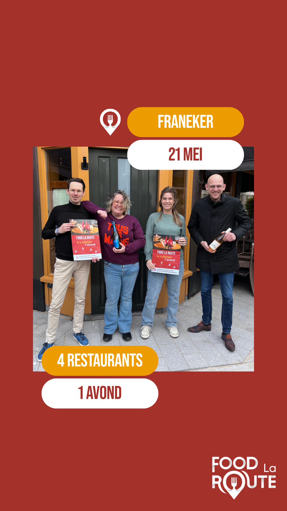 De deelnemende restaurants zijn Grandcafe de Doelen, Mister Jacks, Ristorante Toscanini en Bistro Sinnyn. De avond start in één van deze locaties, waarna deelnemers van gang naar gang wandelen. Zo ontstaat een gezellige route door Franeker, waarbij ontmoeten, genieten en ontdekken centraal staan.