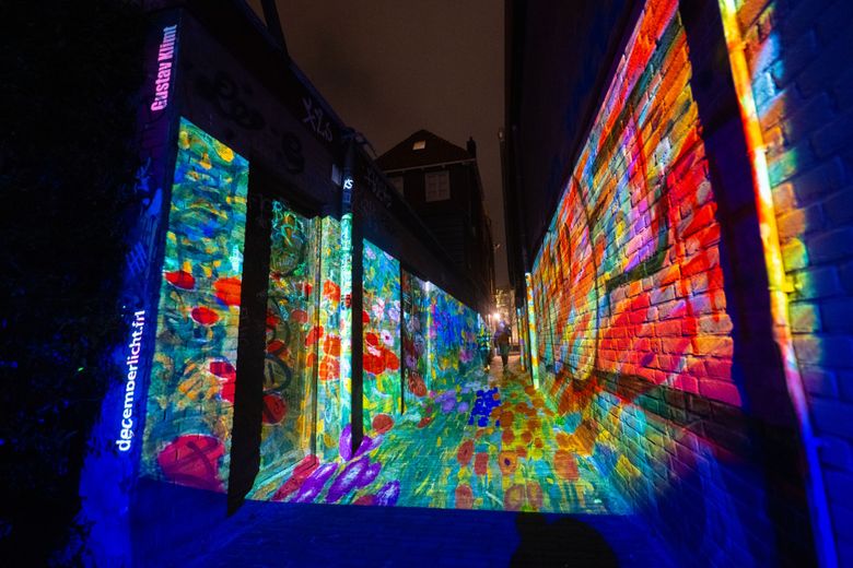 Mit Decemberlicht bringt das Duo Kroft&Smids Licht in die dunklen Tage rund um Weihnachten und Neujahr, indem sie an verschiedenen Orten im Zentrum von Leeuwarden Gebäude in Orte verwandeln, an denen Geschichten in Wort oder Bild erzählt werden.