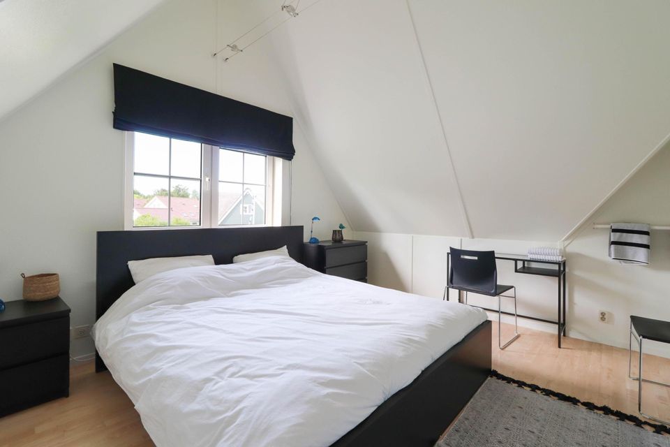 This is a detached villa with thatched roof, has a large garden and is located on an open waterway. Here you can enjoy yourself on the terrace or on the jetty by the water until the late hours. The living room has a spacious and cozy sitting area with flat screen TV. From the living room you have direct access to the outdoor terrace and the open kitchen. The kitchen is equipped with a dishwasher, combination microwave, Senseo and coffee maker, kettle, toaster and fridge/freezer combination. There is a small bathroom on the ground floor. There are three bedrooms on the top floor, all of which have box-spring beds. Here you will also find the second bathroom with shower and 2nd toilet.