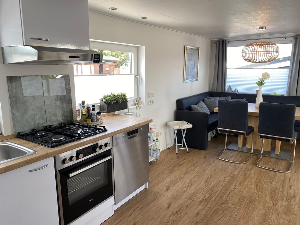 This fine chalet is located on the water and has its own jetty where you can moor a boat of up to 7 meters. The garden is spacious and includes a comfortable lounge set and a terrace on the water. The chalet consists of a main chalet and an annex. The main chalet features a spacious open plan living and dining room with a large corner sofa, cozy dining area and well equipped kitchen. This kitchen includes an oven, dishwasher and spacious fridge-freezer combination. in this main chalet there is also a double bedroom and a bathroom with shower, toilet and sink. The outbuilding consists of a double bedroom and a bathroom with a shower, toilet and sink.