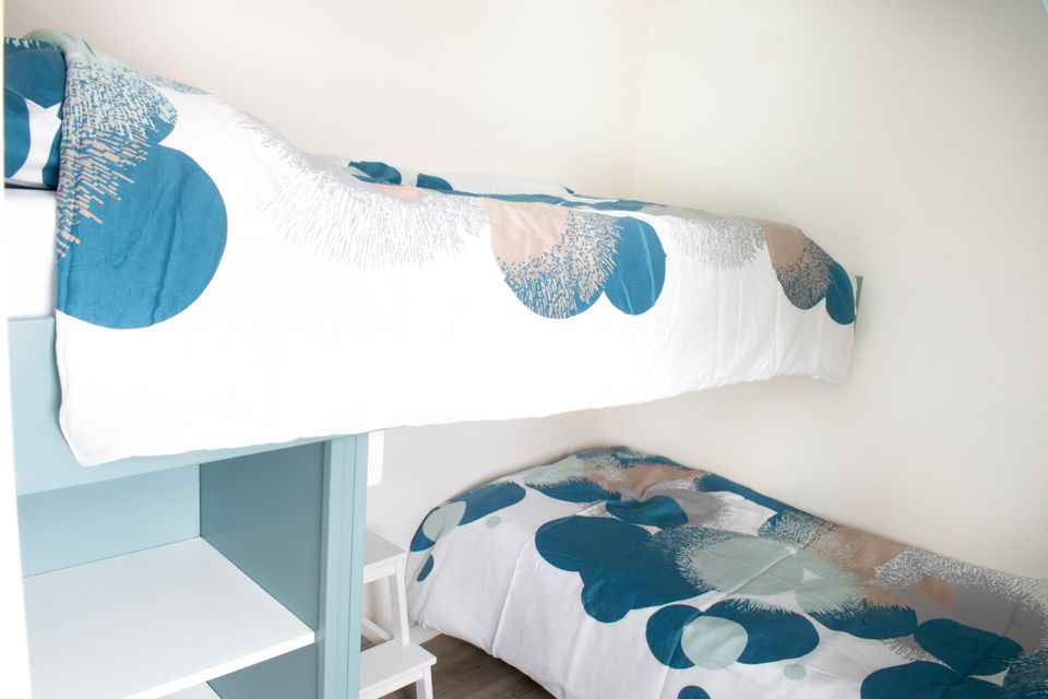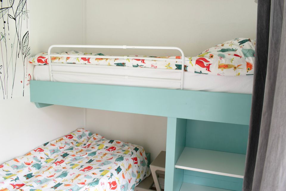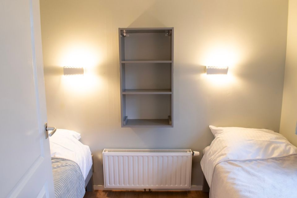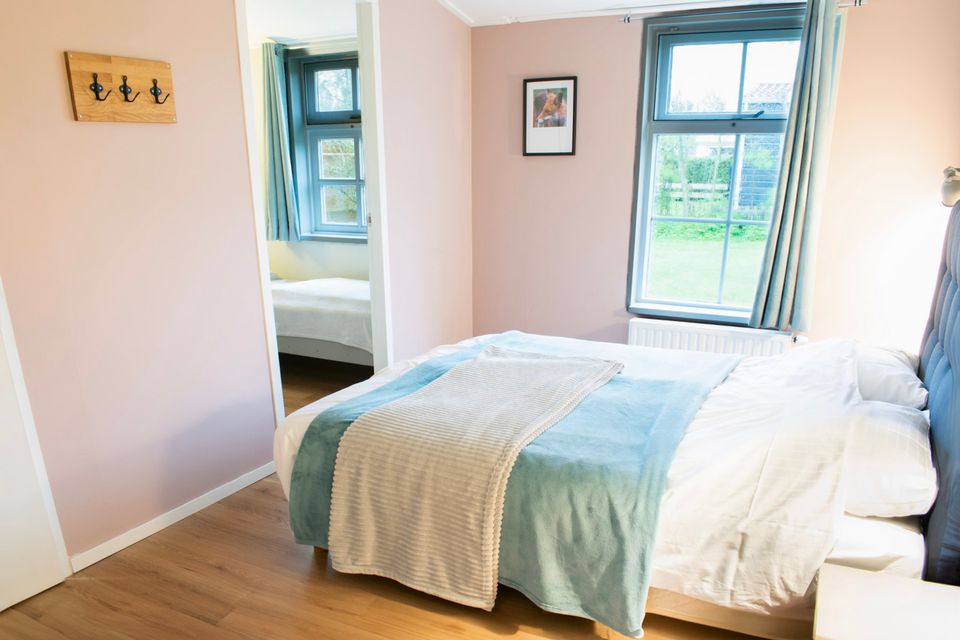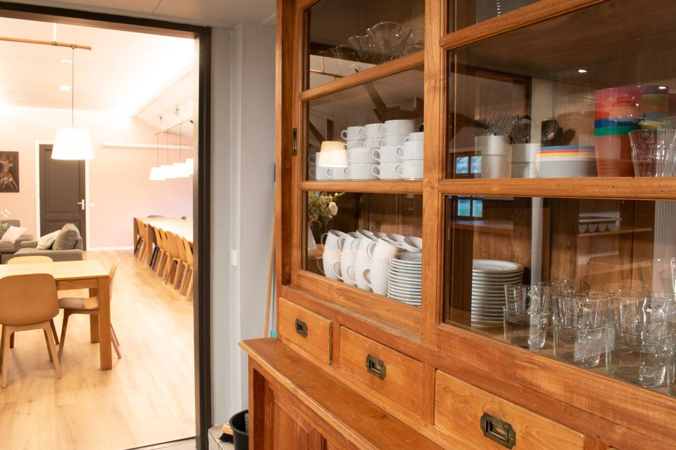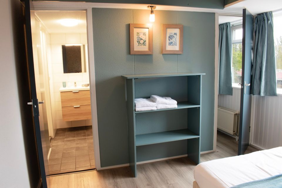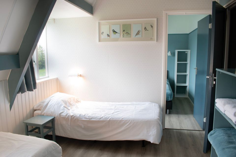 The family house is an attractively furnished house with a comfortable sitting area and spacious open kitchen. A cozy part of the living room is the wood stove that you can use during your stay, wood is supplied! In the family house there are 8 bedrooms, all of which have two or more comfortable single beds. Unique to the house is that each bedroom has its own bathroom! In the living room there are French doors which lead to the terrace of the private garden. A little further is the playground and the outdoor pool.