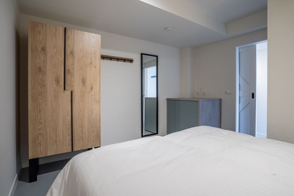 This apartment has no fewer than two terraces! At the front is a terrace, just like at the rear. The terrace at the front has evening sun, making it a good place to relax at the end of the day. The terrace with garden at the rear borders on the Sneekermeer, so you can enjoy a beautiful view. The apartment is equipped for four people and has two bedrooms, each with two single box-spring beds. There is also a spacious bathroom with shower, toilet and sink. The living room is spacious with a nice sofa and chairs overlooking the Sneekermeer and a cozy dining area. From the living room you can easily step into the garden. The kitchen is fully equipped including a refrigerator, dishwasher and combi oven.