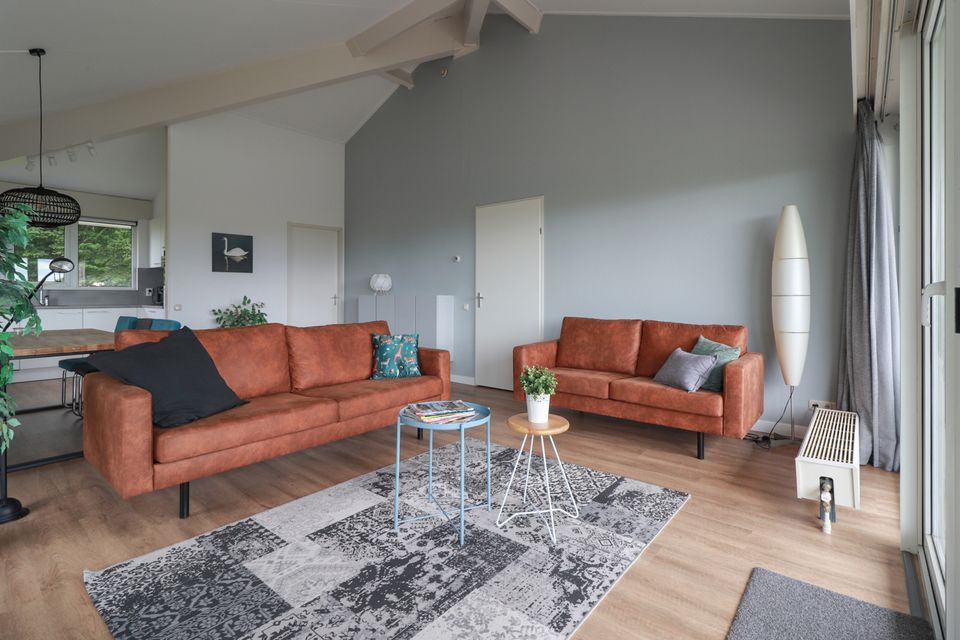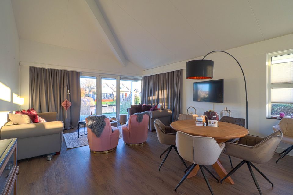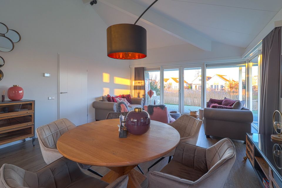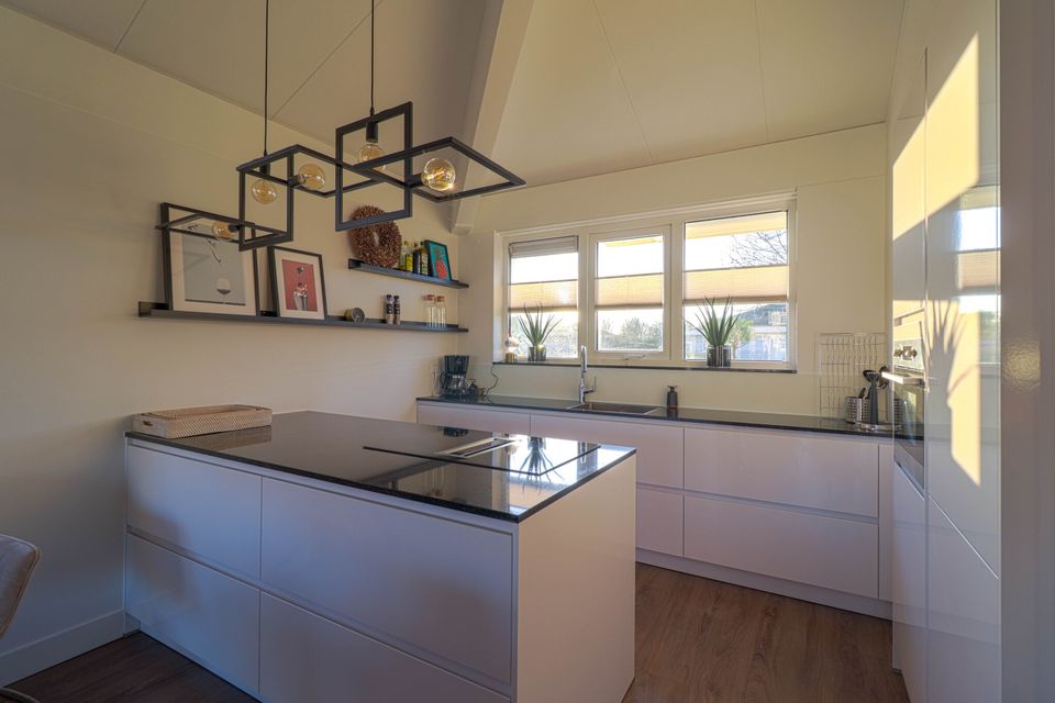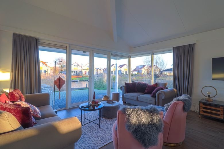 These detached ground-floor 'Star+' bungalows are suitable for 6 people and are located on open waters. These beautiful bungalows have been completely renovated and furnished. Each bungalow has 3 bedrooms with comfortable box-spring beds. The master bedroom has a private bathroom with shower and sink. There is also a second bathroom with shower and toilet and a separate toilet. The bungalow has a beautiful new kitchen with cooking island, induction hob with integrated extraction, dishwasher, combination microwave, Senseo and coffee maker, kettle, toaster and fridge/freezer combination. The entire floor area is PVC with underfloor heating. A washing machine and dryer are available in the utility room. Through two French doors you have access to the outdoor terrace and large garden.