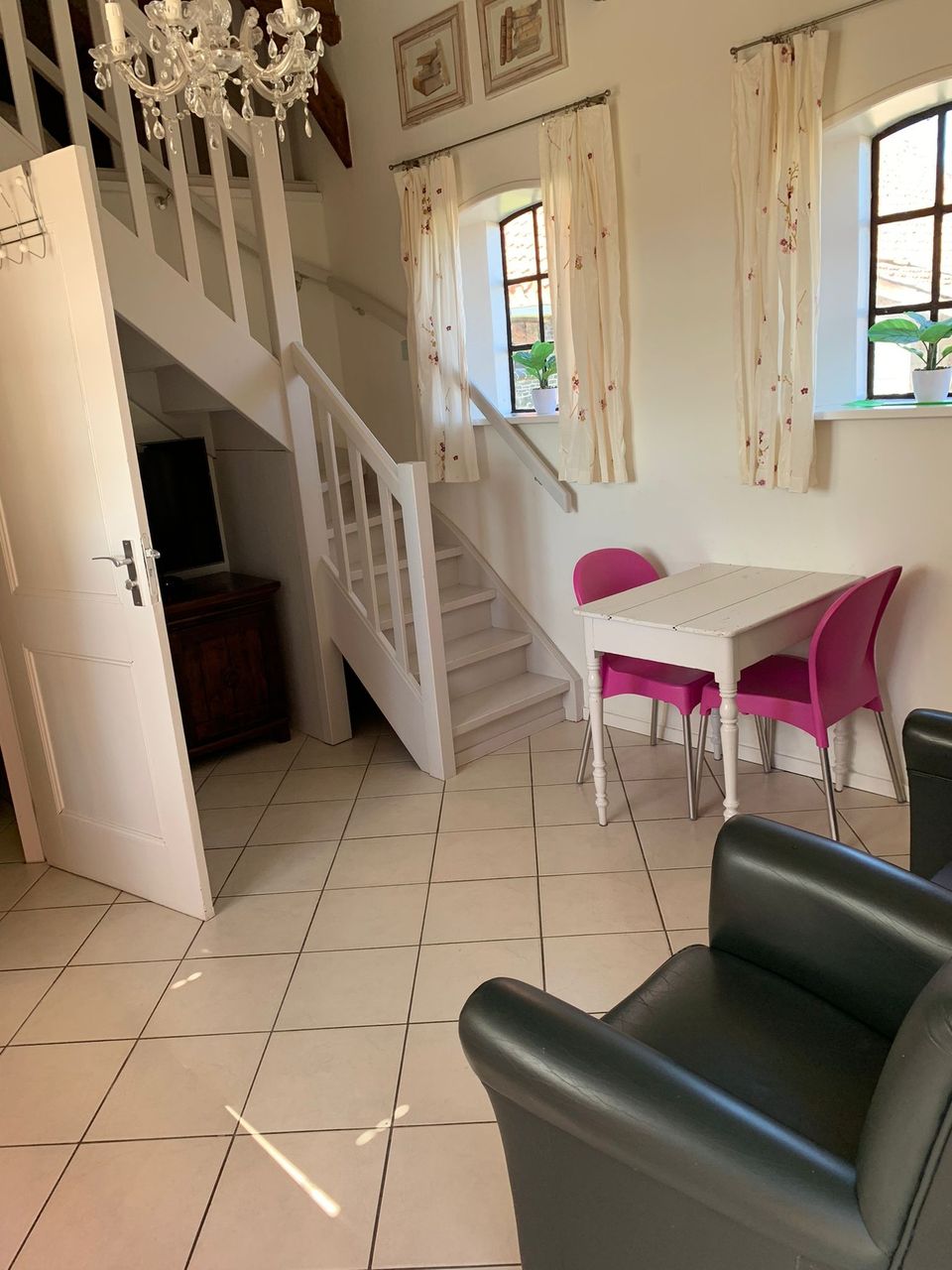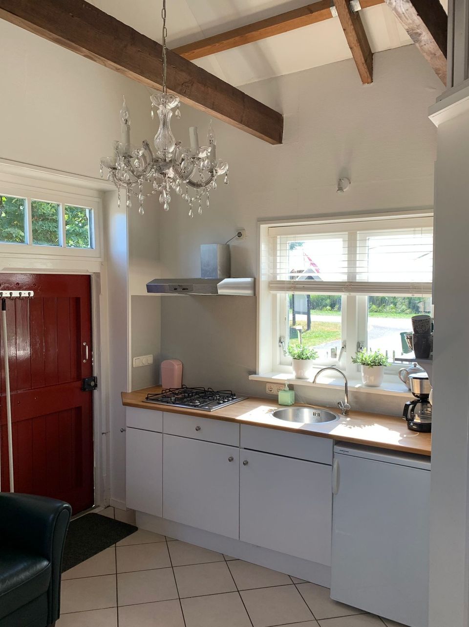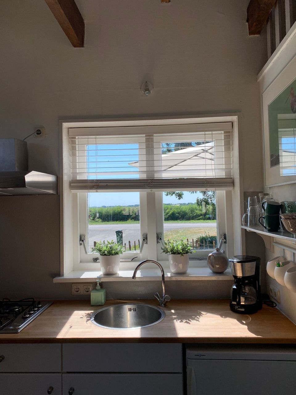 This characteristic Frisian farm with a restored coach house is located in the middle of the meadows, where you can spend the night. The apartment is suitable for 2 persons. It has its own compact seating area with television and open kitchen. The kitchen block includes a gas stove and refrigerator. The bathroom with shower and toilet is also located on the ground floor. On the first floor is the sleeping loft with 2 single beds under the authentic trusses. You have a private terrace with a beautiful view over the meadows at your disposal. Here you will find peace, natural beauty, open landscape and many meadow birds (especially the black-tailed godwit) that breed there in the spring. In summer, this area is ideal for water sports enthusiasts.