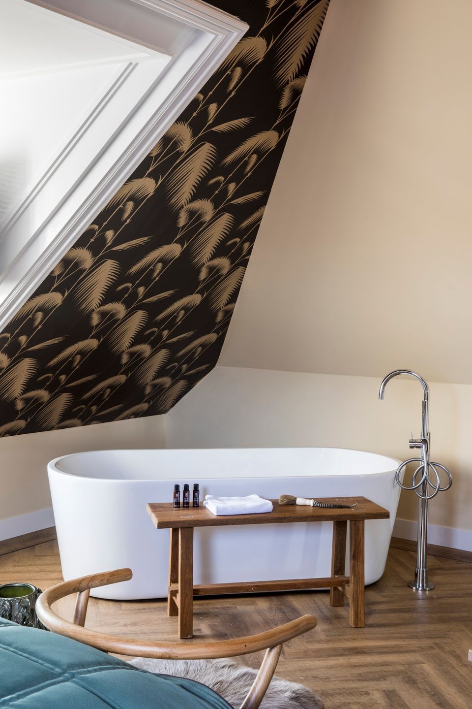 The Junior Suite is a luxurious room of at least 30 m² with a stylish and comfortable interior. In the middle of the room is a freestanding bath, surrounded by a spacious double rain shower with soft towels and care products from Marie-Stella-Maris. The king-size box-spring bed with cold foam mattress ensures a relaxing night's sleep. The room is also equipped with a flat-screen TV with an extensive channel package, coffee and tea making facilities, a laptop safe, hairdryer and a sustainable climate system with which you can regulate the temperature to your liking.
