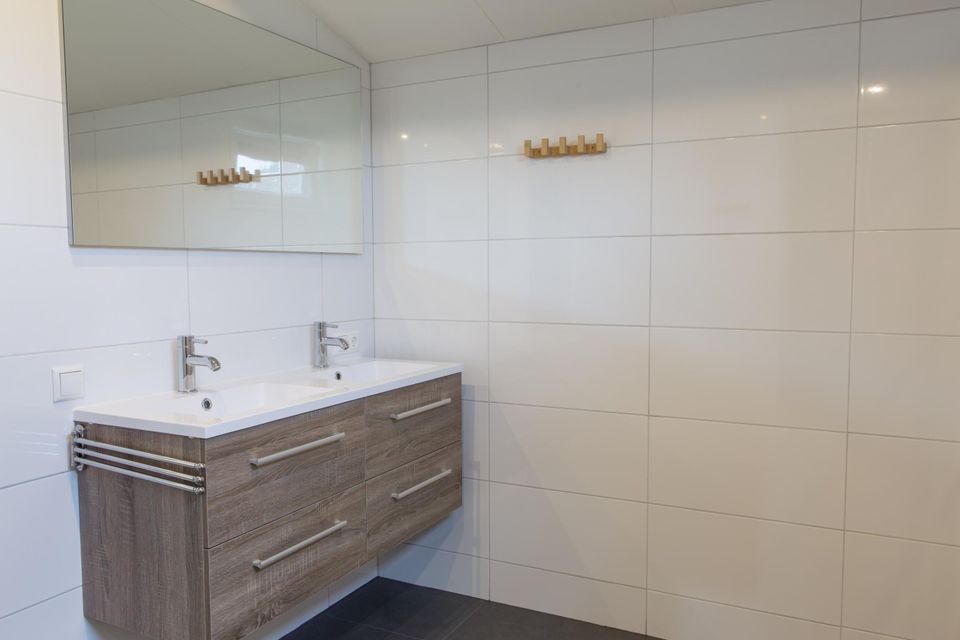 From the hall you walk into the modern and cozy living room with open kitchen. The modern kitchen is fully equipped, including a dishwasher, refrigerator, oven, coffee maker and large gas stove. There is a dining table with six chairs and a television. The sitting area has a corner sofa with armchair. On the ground floor there is a bedroom with a double bed and on the upper floor there are two bedrooms with 2 single box spring beds. The bathroom has a shower and sink. The holiday home was completely renovated in 2017/2018 into a modern, attractive luxury holiday home. From the veranda you look out over the Frisian lakes, the view is truly fantastic!