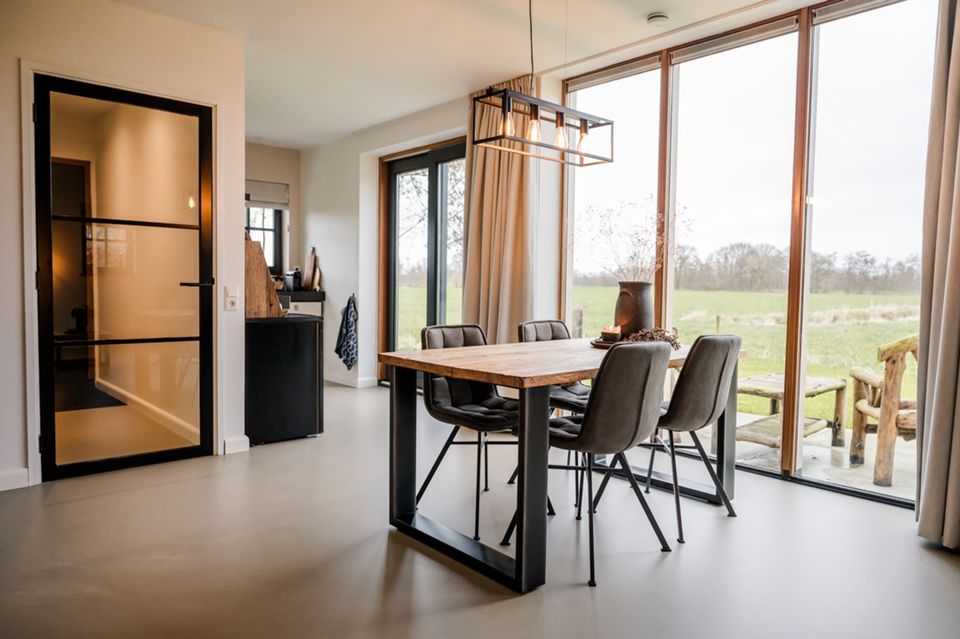 In this spacious and luxurious holiday home, you'll experience country life at its finest. From your bed, you can look out over the expansive meadows of the Friese Wouden. With a bit of luck, you'll see deer, hares, or cows passing by in the morning mist. The rising sun completes the picture. The house is fully equipped. You'll sleep on a comfortable box-spring bed and can relax in the whirlpool or under the rain shower. The spacious living room and fully equipped kitchen will make you feel right at home. Even warm days are catered for: the air conditioning will keep you pleasantly cool. In the morning, start your day with a cup of Nespresso or tea. Basic amenities such as coffee, tea, herbs, oil, and toilet paper are provided. Towels, washcloths, and bed linens are provided. Staying longer? Then you can use the washing machine, including detergent. This location is a wonderful starting point for exploring the countryside and surrounding area. You're close to Drachten, nature reserves, and the A7 motorway. Once inside you will mainly experience peace, space and comfort.