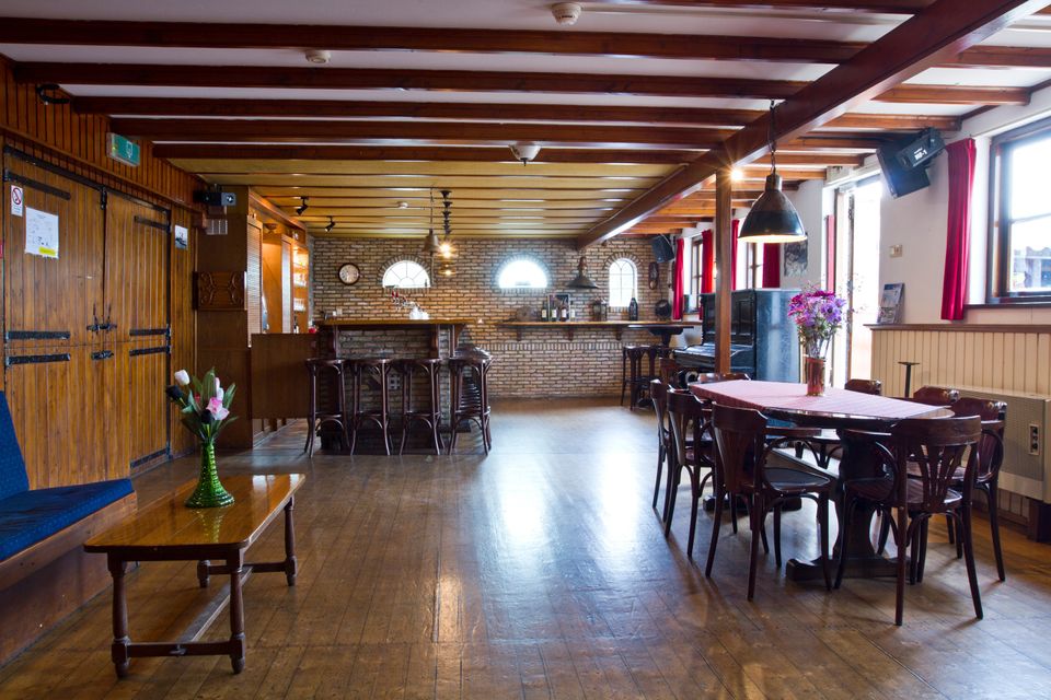 The group accommodation is located in a former farm. In the space that used to be the stable, you will now find a breakfast and dinner room. It is a cozy room surrounded by several bedrooms, a cozy bar and a smaller room. The bar is cozy and a great place to discuss the day. The bar and dining room can be linked together and the sound system and disco lights make it a real party space. The accommodation has 21 bedrooms that can accommodate 2 to 8 people and in total there are 130 sleeping places. You don't have to bring your own bed linen when you stay here, because the beds are made for you on arrival and daily during your stay! Above the bar is an extra seating area with comfortable sofas and a beautiful view over the Poelen area.