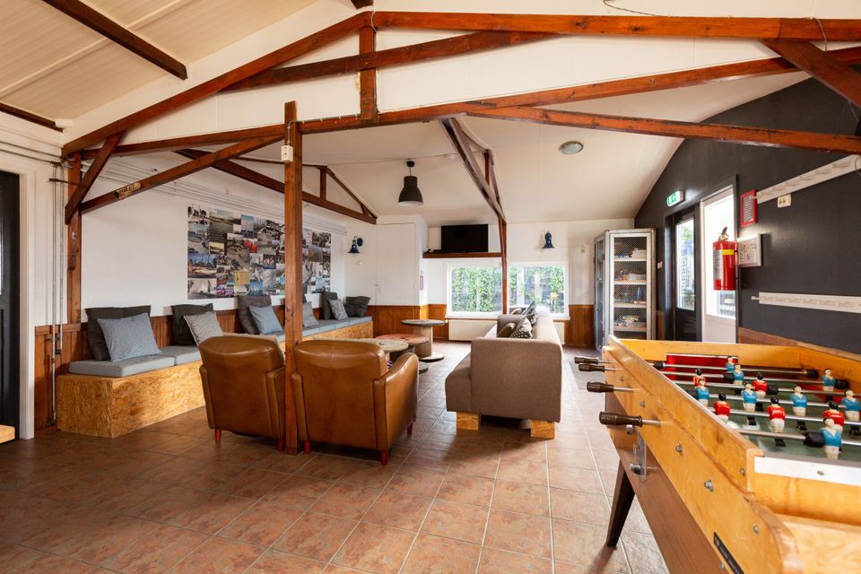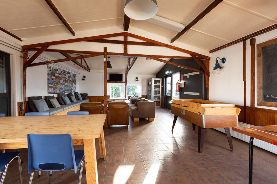 This spacious group accommodation is located entirely on the ground floor and consists of a large living space with living room, dining area and bar. The large industrial refrigerator offers everything you need, a large gas stove, oven and dishwasher. The group accommodation has 10 bedrooms, which are alternately suitable for 2 - 8 people. The bedrooms consist of bunk beds and single box-spring beds. The sanitary facilities are divided into three areas with a total of 6 showers and 6 toilets. Each bedroom has its own sink. Outside is a spacious terrace with garden, trampoline, play equipment and a hot tub!