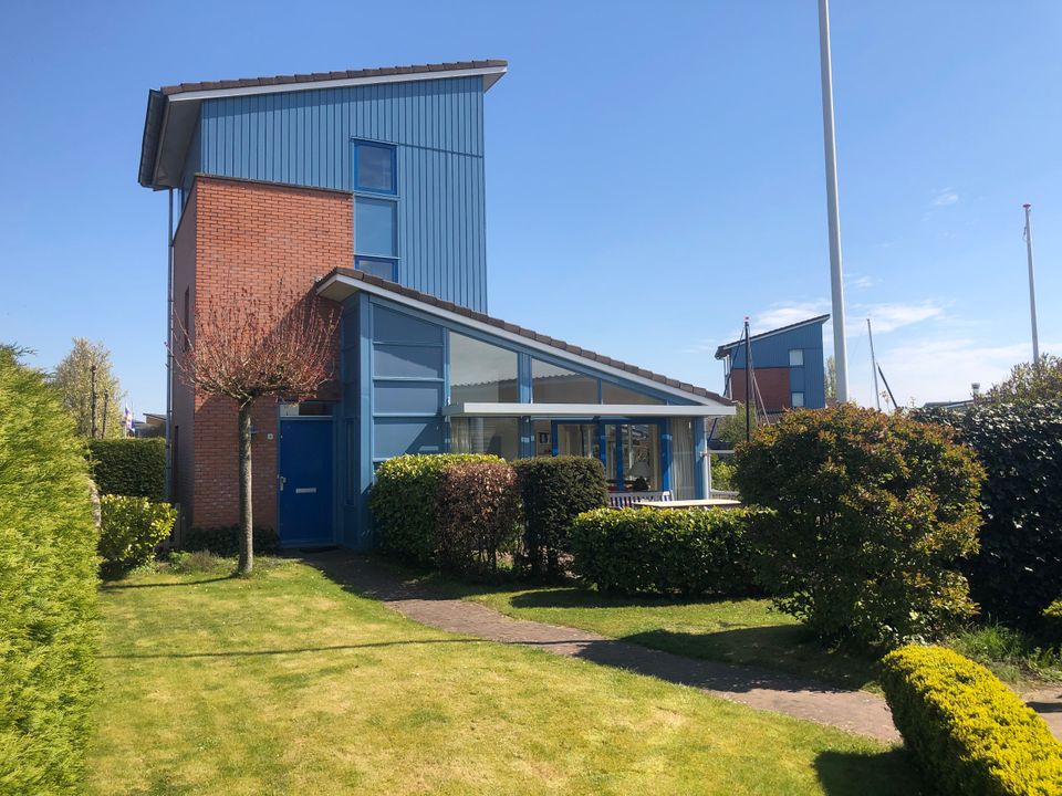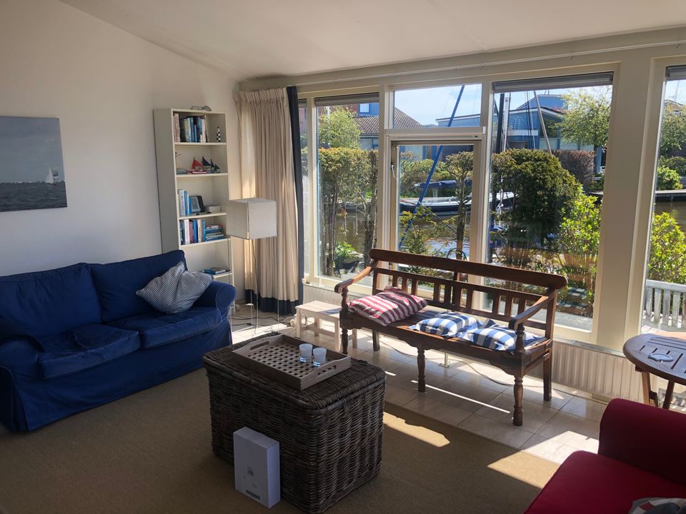 This beautiful tower house is located on the water. The house is for seven people. There are three bedrooms spread over the floors, one with a double bed, one with a loft bed and box spring bed and one with a loft bed and two single beds. There is a toilet and two bathrooms on each floor. Outside you will find a harbor with your own spacious mooring. Here you can enjoy the spacious garden and terrace on the water.