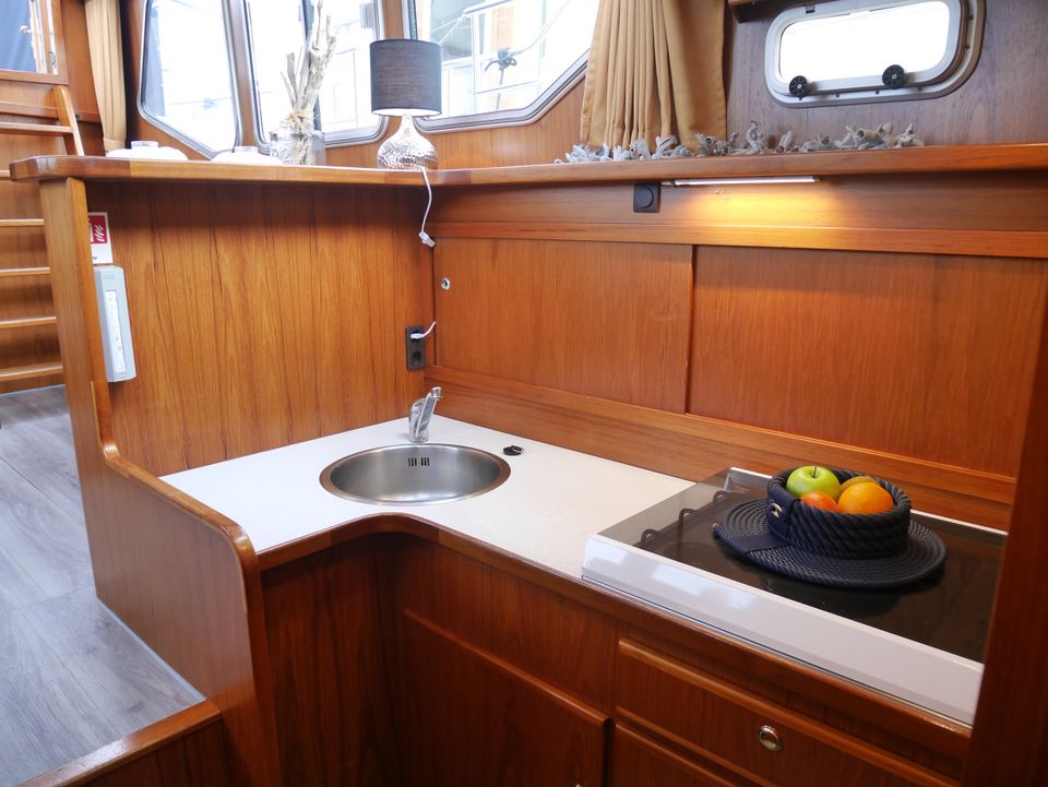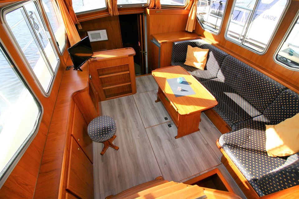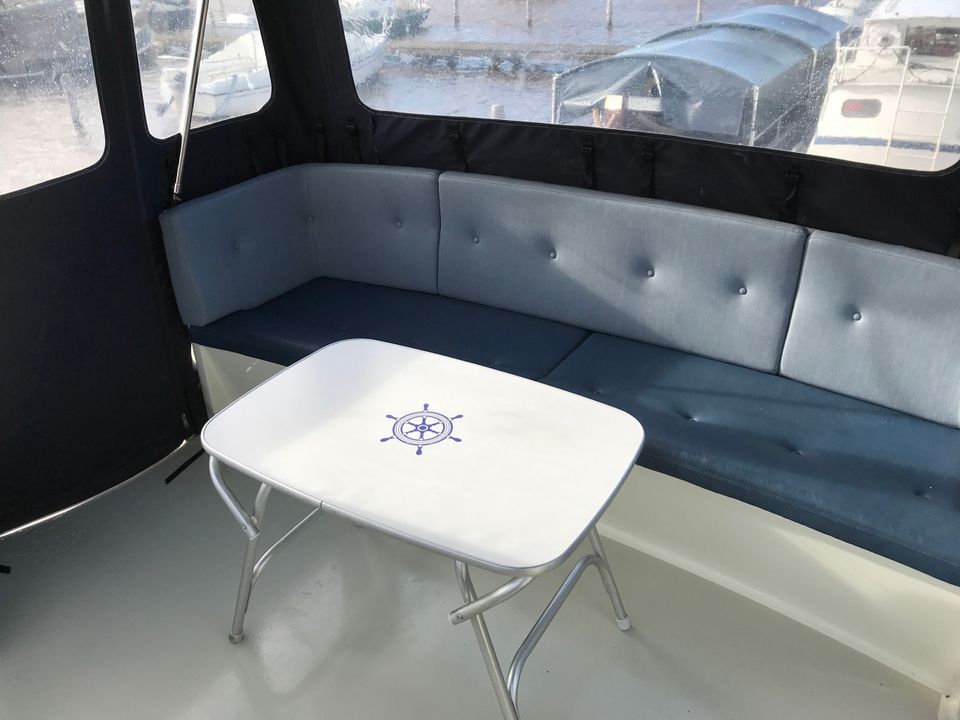 This beautiful Privateer 34 is fully equipped and offers plenty of comfort on board for 4 people. You have two separate sleeping cabins, two electric toilets, a separate shower and a fixed bench on the aft deck with a spacious XL convertible tent. Thanks to thermopane glazing, heating and LED interior lighting, it is also pleasant to stay in bad weather.