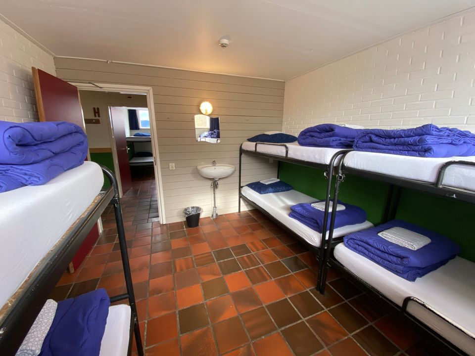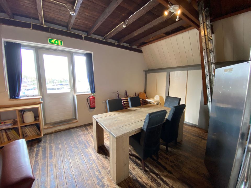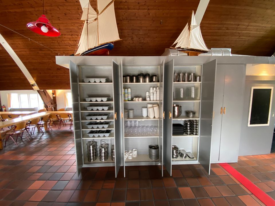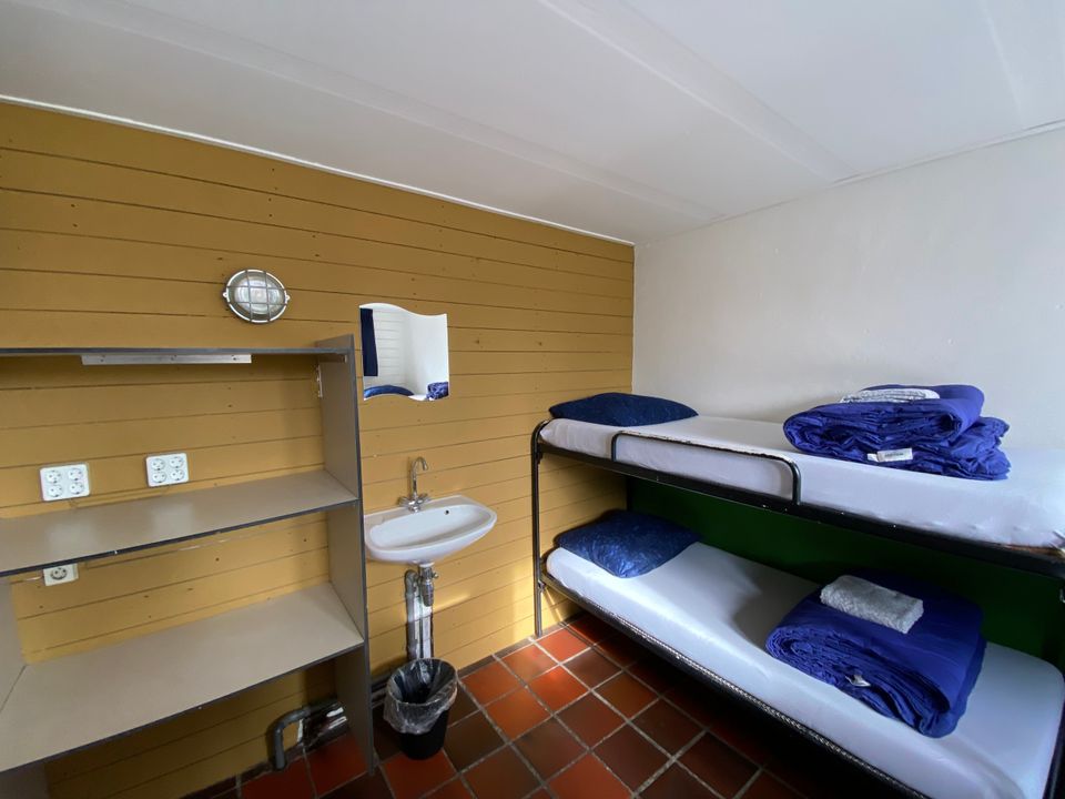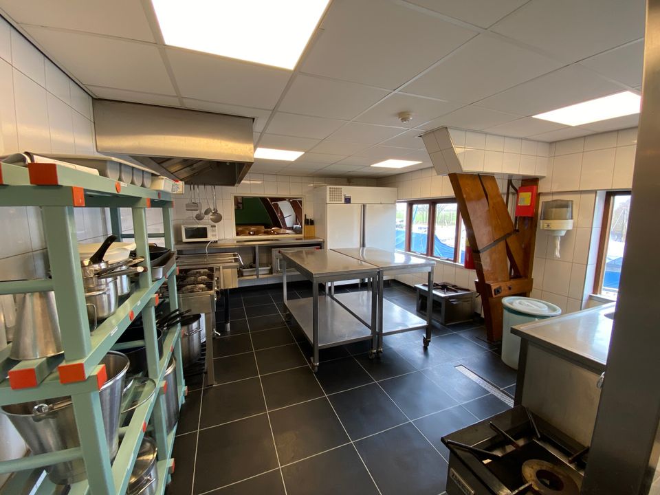 This unique group accommodation has been realized in a former church. The entire ground floor has been designed in such a way that there are 11 bedrooms, enough for a maximum of 68 people. There are 12 showers and 6 toilets in the accommodation, these are also located on the ground floor. On the first floor, in the ridge of the church, a large living space has been realized, including a spacious, fully equipped kitchen. There is also a bar and several tables with chairs. Around the accommodation is a terrace and playing field. Because of its location on the water, you can get on your boat in no time to explore the area from the water!