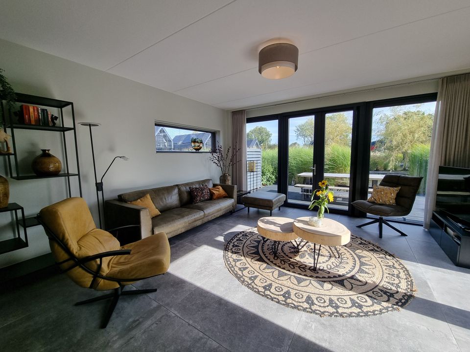 When you step into this luxurious water villa with its own mooring on the water, you immediately experience the peace and space in the house. The kitchen is very spacious, so you can cook with the whole group. The living room (xxl) is also spacious, with enough seating for everyone. From the seating area you have a wonderful view over the water and the marina. Through the living room you step into the garden, which is located directly on the water. Here you can moor your own boat, but you can also rent a boat at the park. When you go to the first floor of the house, you will see three bedrooms. Two bedrooms have a double box-spring bed and one bedroom has a bunk bed. On this floor you will find two bathrooms and a separate toilet.