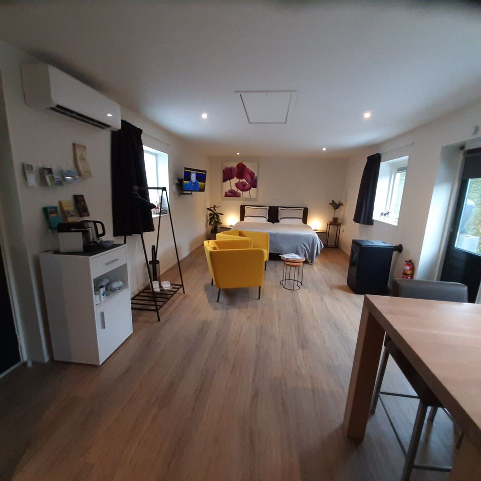 Our features: Top quality beds, private bathroom with rain shower, towels, bathrobes, slippers, hair dryer, bath items, kitchenette with fridge, microwave, ceramic hob, crockery and glassware, WiFi, digital TV, Netflix, ESPN Sports, air conditioning, coffee machine (Nespresso) and tea kettle , attractive pellet stove, private car park, closed bicycle shed, bicycle rental (tandem and e-bikes), private south-facing terrace, plenty of tourist information.