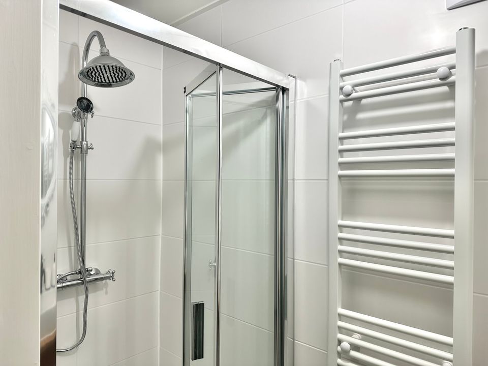 There are two bedrooms on the ground floor. The first bedroom features a double bed (200x200). The second bedroom also has a double bed (140x200). There is also a bathroom and a separate toilet on the ground floor (both renovated in 2025).