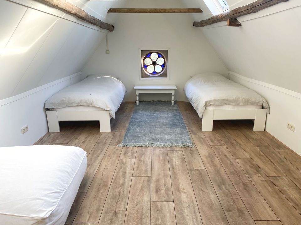 Cozy, charming farmhouse cottage (1-7 people, 3 bedrooms; more people/customization is negotiable) in the Frisian countryside, just outside Sneek. The cottage features a comfortable living room with a seating area and dining area. From the living room, you have a view of the fields. It is brightly decorated in a country style. Adjacent, you will find the kitchen, which is fully equipped with a dishwasher, oven, refrigerator with freezer compartment, and coffee maker, among other things.