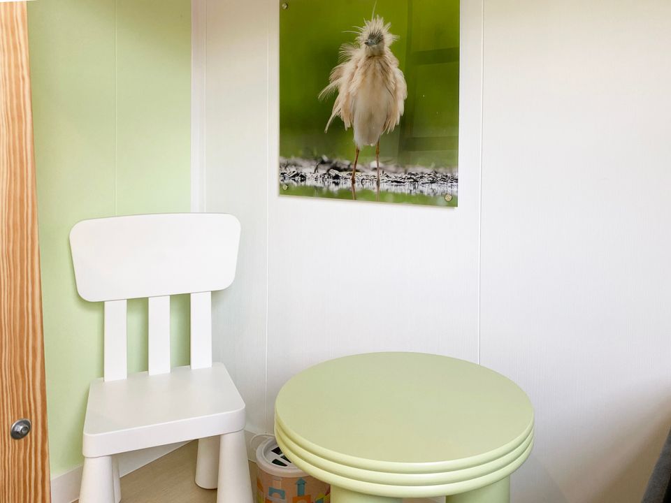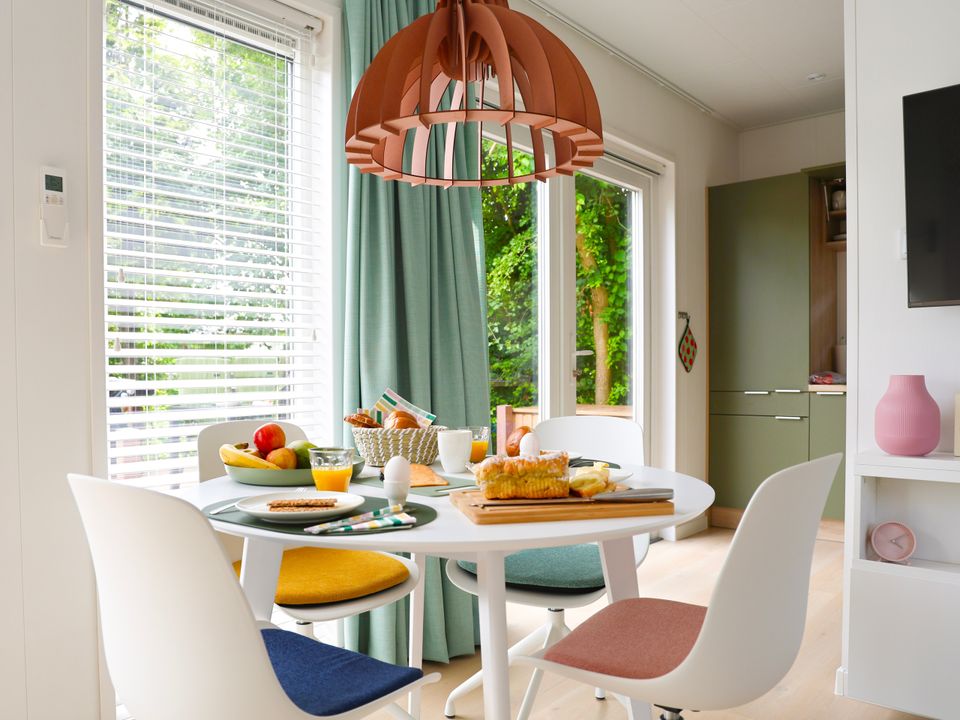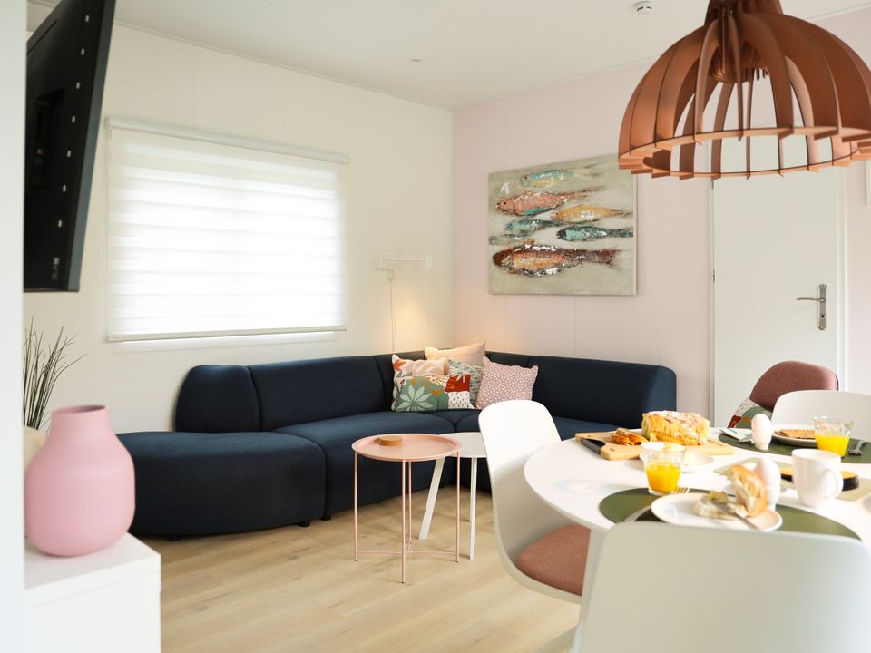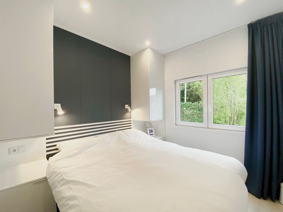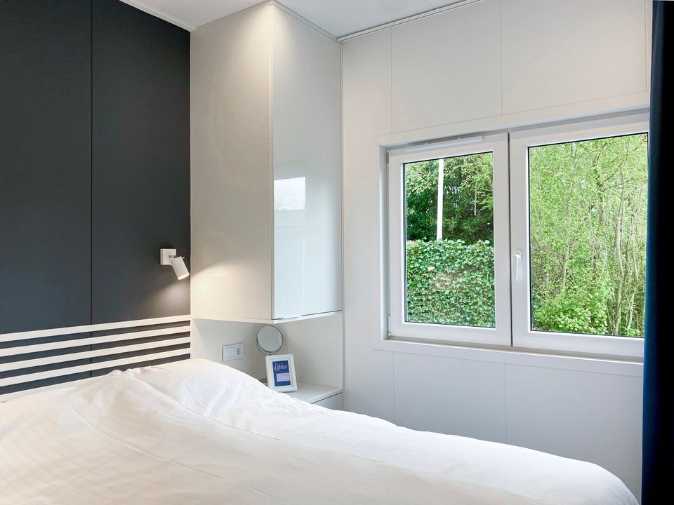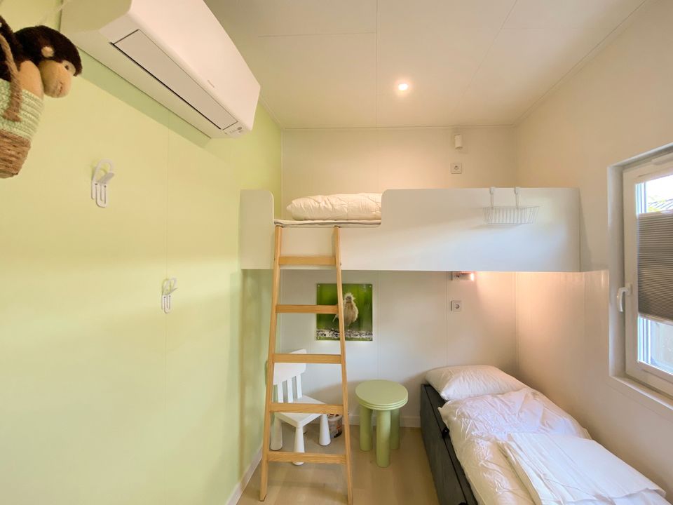 This new chalet (2024) is a wonderful place to spend your holiday in Friesland. The chalet features two bedrooms and three air conditioners. The master bedroom has two linked single hotel box-spring beds (210cm long), and the other bedroom has a bunk bed. The lower bunk is therefore also very suitable for adults.