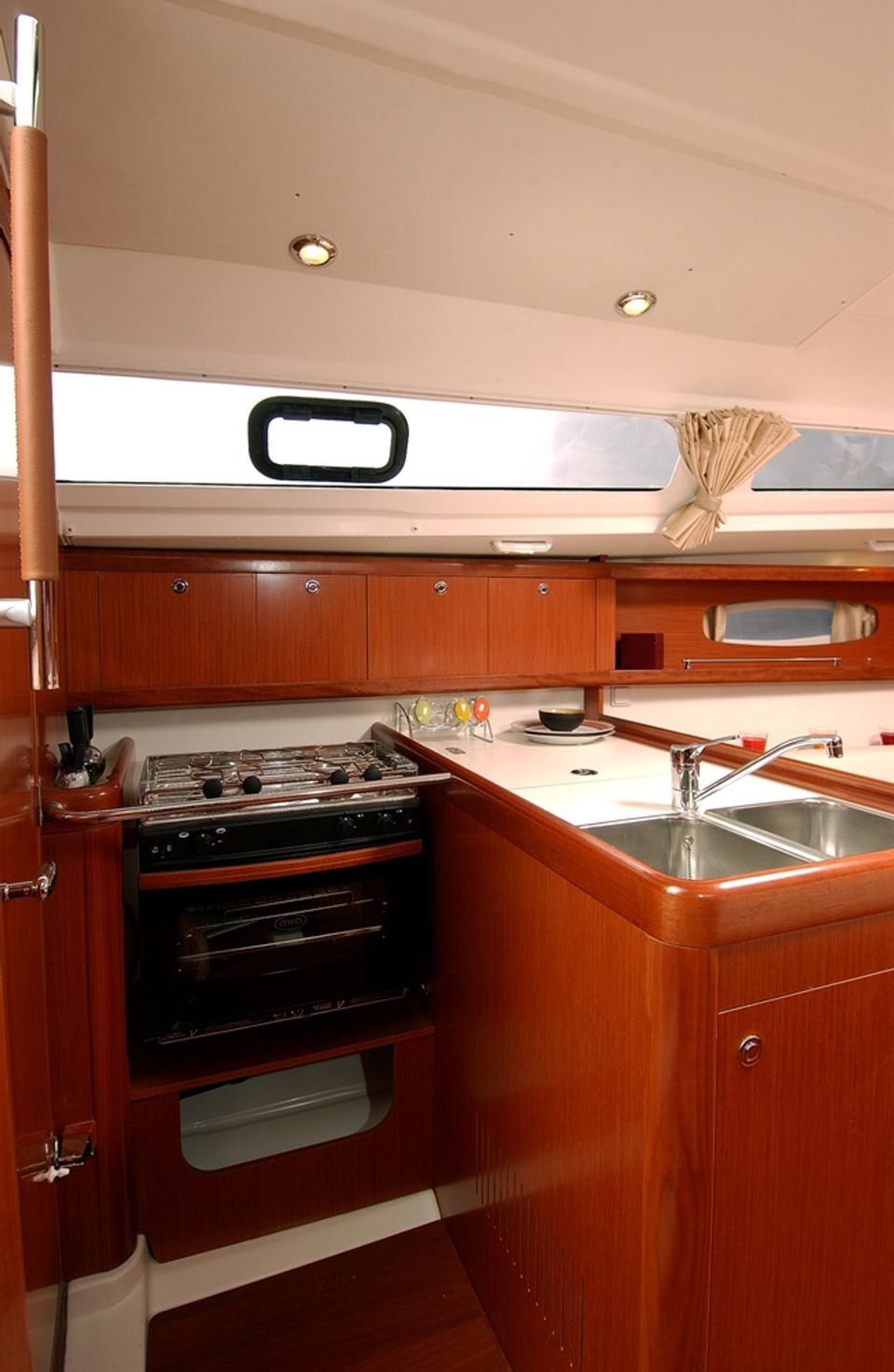 You can discover the Frisian waters with the whole family with this modern and fast family sailing yacht. Due to the shallow draft, this sailing yacht is particularly suitable for the Frisian lakes and the surrounding waters such as the IJsselmeer. In addition, you can operate the entire sailing yacht from the cockpit. On board you have a headroom of 1.85 meters, there is a nice sitting area that you can convert into two sleeping places. There are also two bedrooms, each with a comfortable double bed. You must bring your own bed linen. The kitchen is fully equipped with cooking pans, kettle, thermos and sufficient inventory. There is even a gas oven and a two-burner stove. You can keep your belongings cold in the deep cool box, which retains its temperature for a long time even after switching off. In the sanitary area you will find a sink and toilet, you take a shower in the harbors where you spend the night. The water maps of Friesland and the IJsselmeer are available on board for you, the water map of the Wadden is available on request.